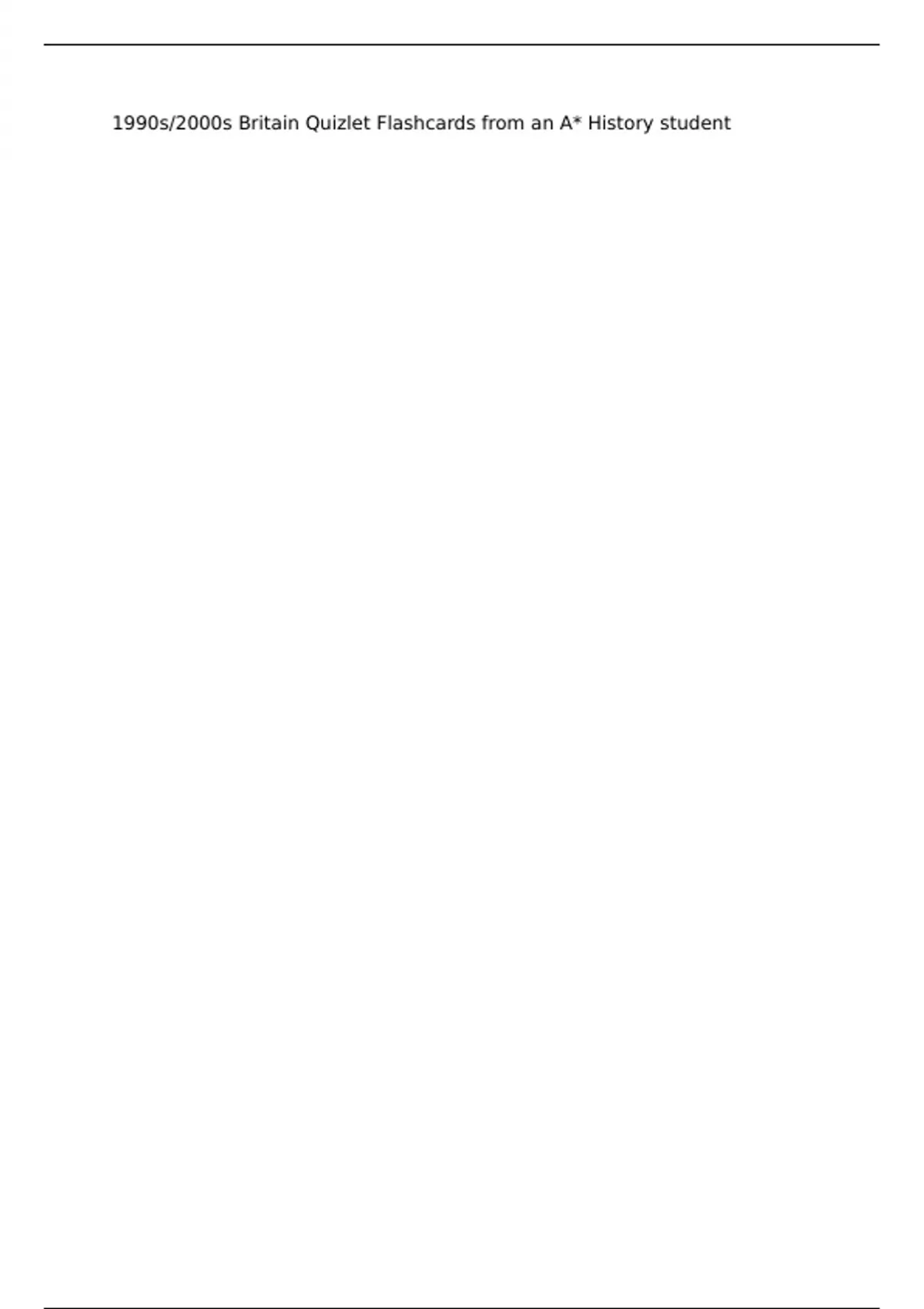 The document gives access to otherwise locked A-Level history flashcards on 1990s/2000s Britain, written for the AQA course “The Making of Modern Britain” but applicable to other courses & exam boards as well. 4 distinct sets are included in the document. Used for the 2024 summer exam series to obtain an A* in AQA A-Level History.