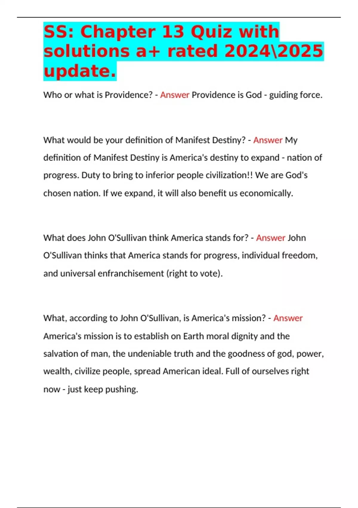 What would be your definition of Manifest Destiny? - Answer My