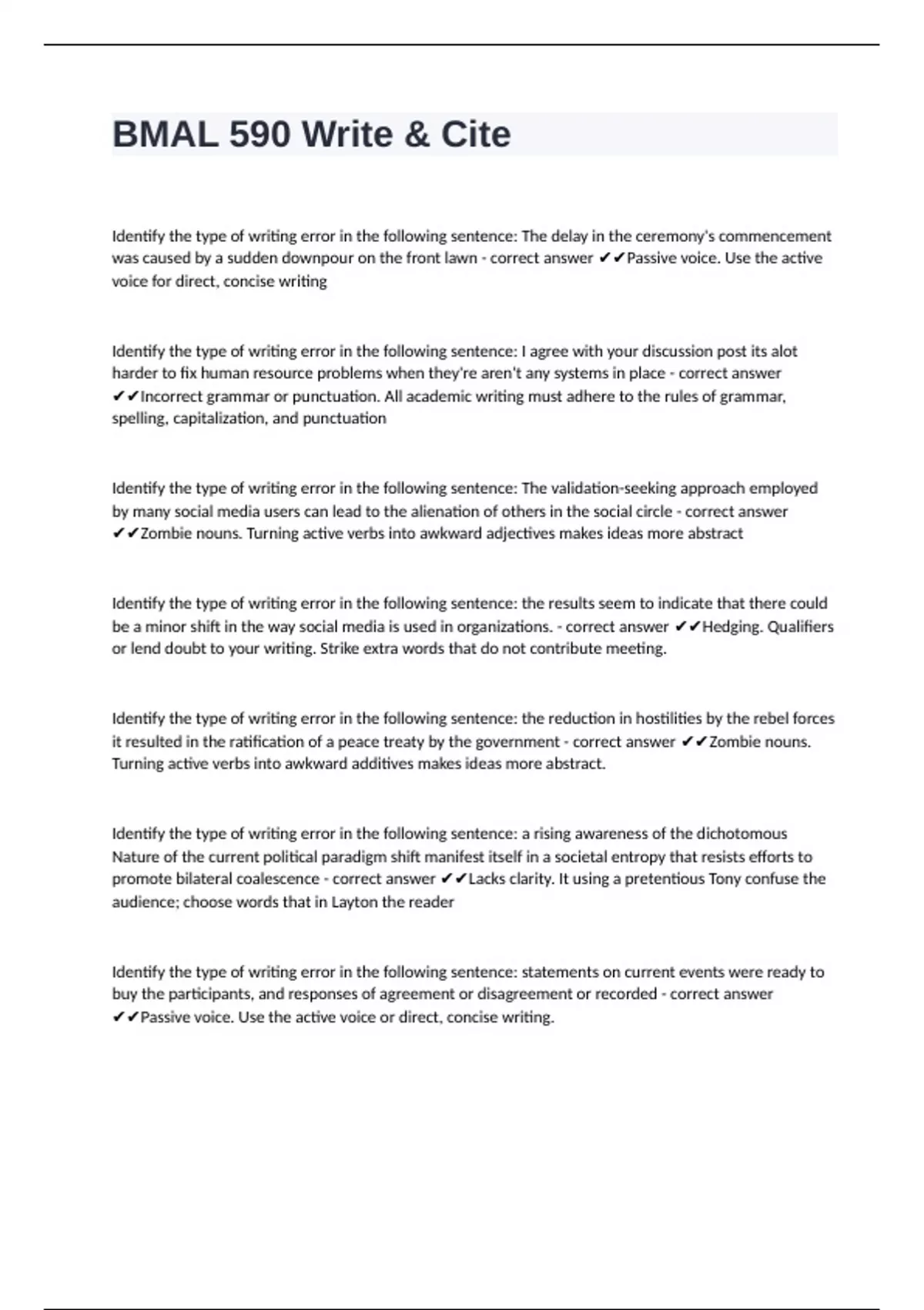 ✔✔Incorrect grammar or punctuation. All academic writing must adhere to the rules of grammar,
