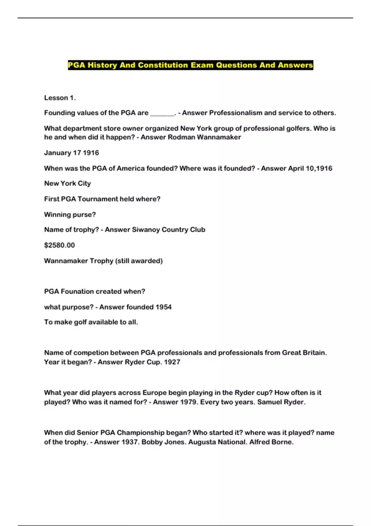 Founding values of the PGA are _______. - Answer Professionalism and service to others.