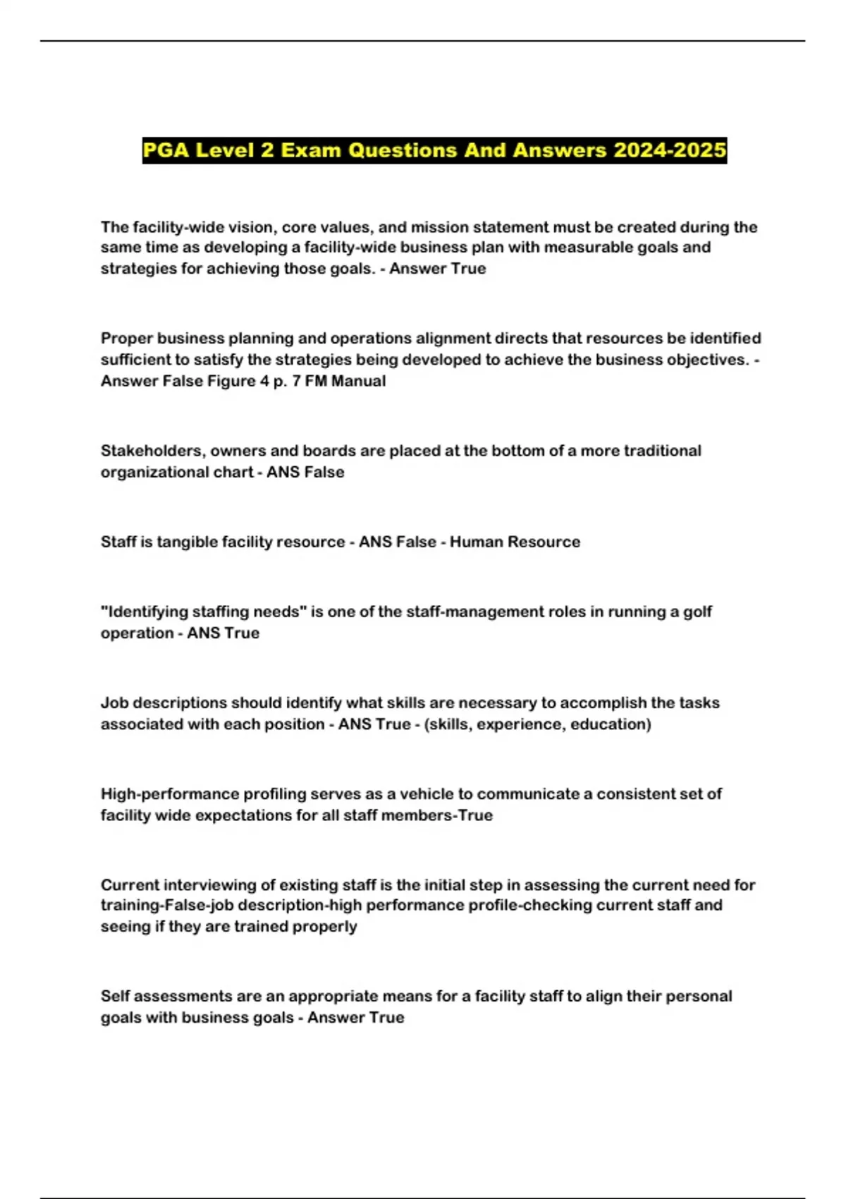 PGA Level 2 Exam Questions And Answers 2024-2025