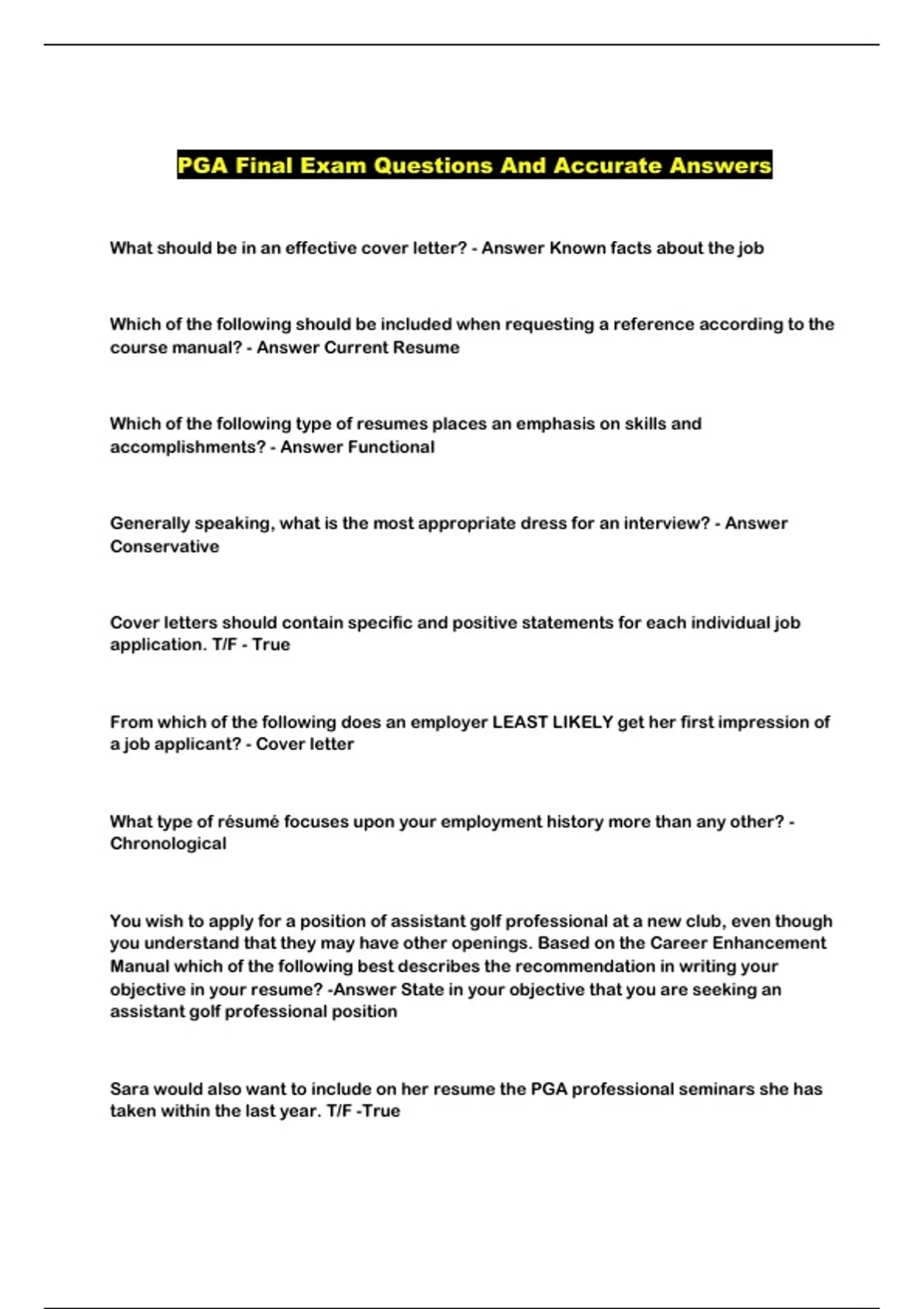 PGA Final Exam Questions And Accurate Answers
