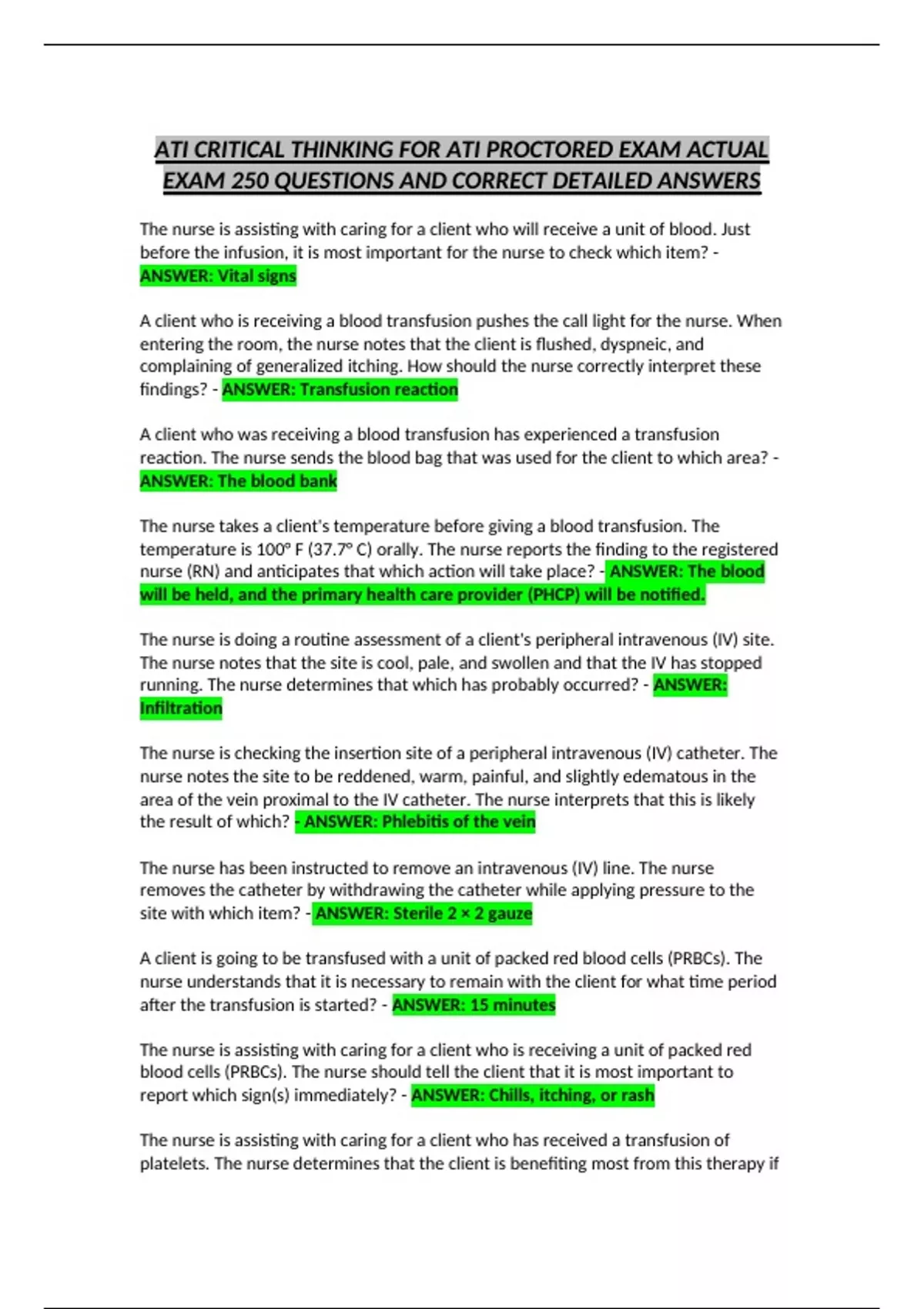 after the transfusion is started? - ANSWER: 15 minutes