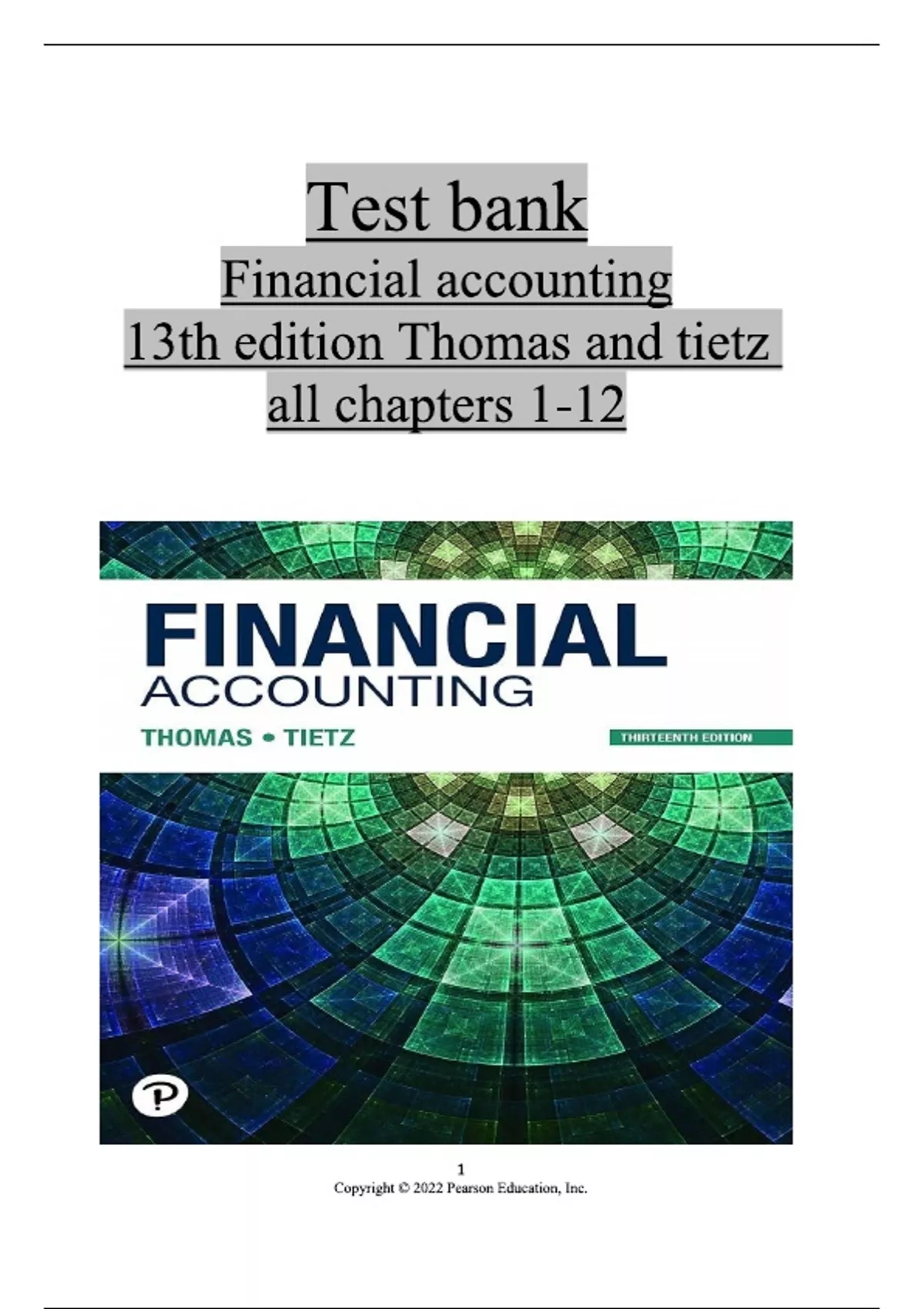 Test bank for Financial accounting 13th edition Thomas and tietz all chapters 1 to 12 complete ISBN;978-0136899037