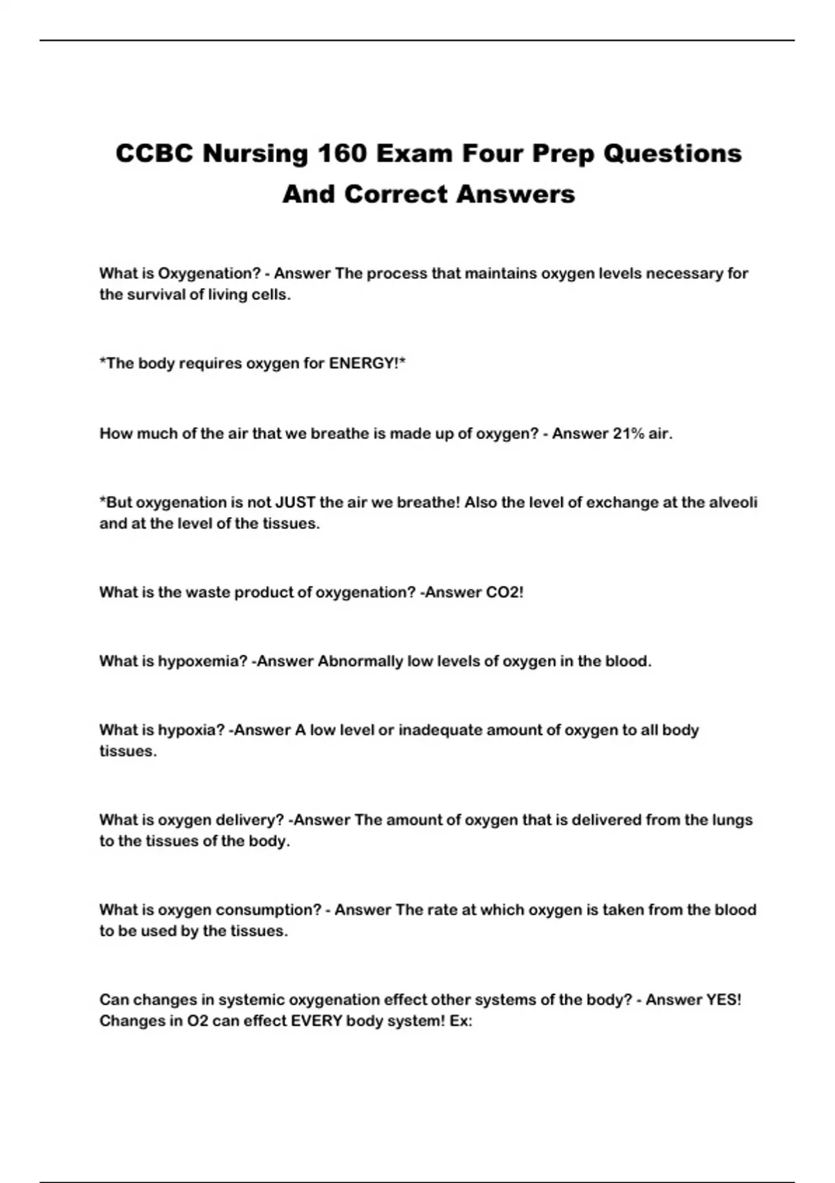 What is Oxygenation? - Answer The process that maintains oxygen levels necessary for