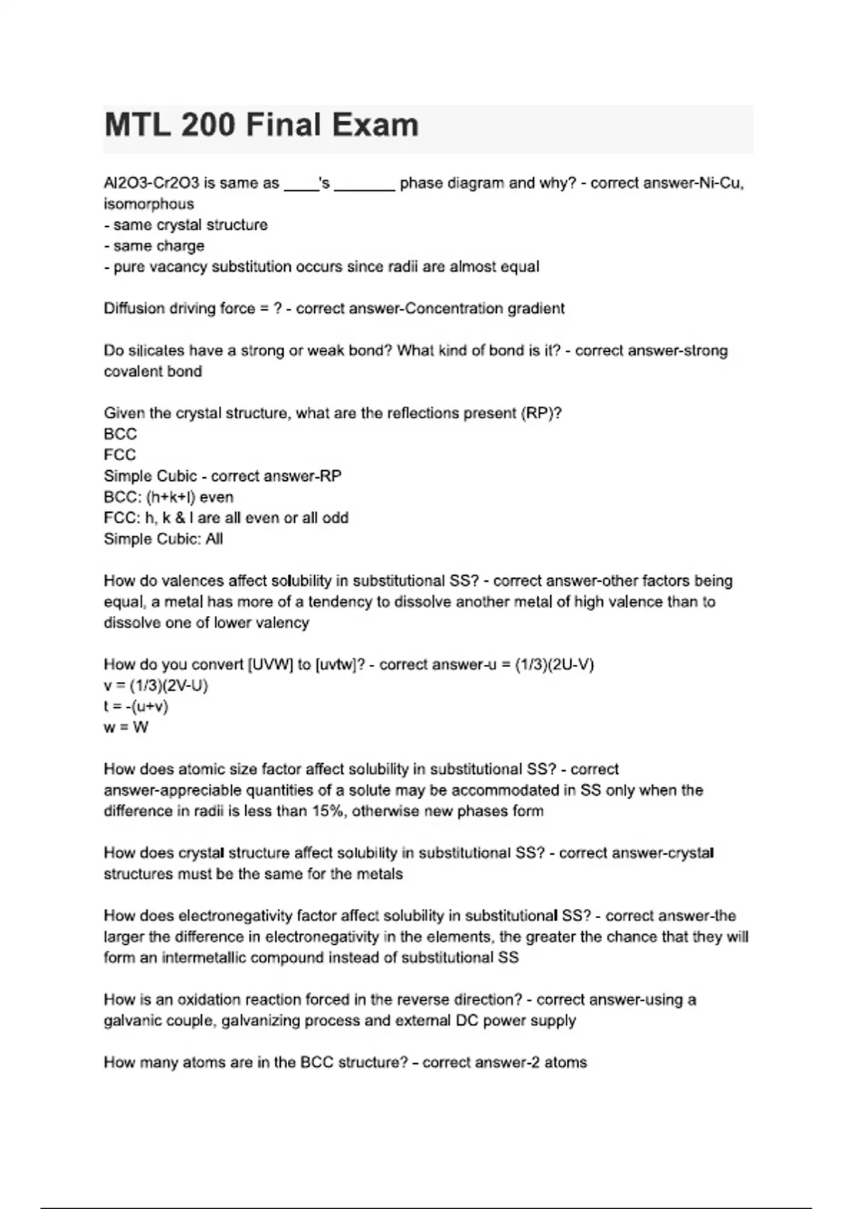 MTL 200 Final Exam Questions and answers