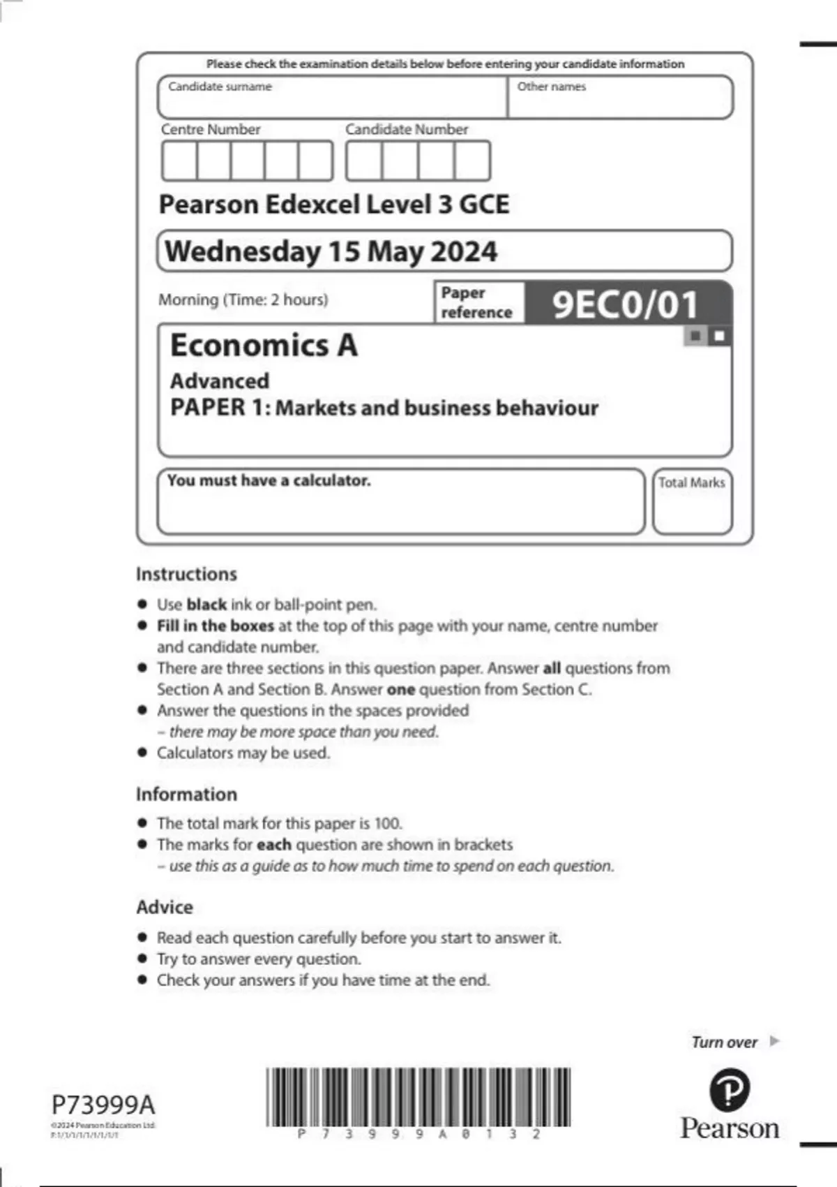 AQA EDEXEL ECONOMICS A PAPER 1 JUNE 2024 FINAL QUESTION PAPER