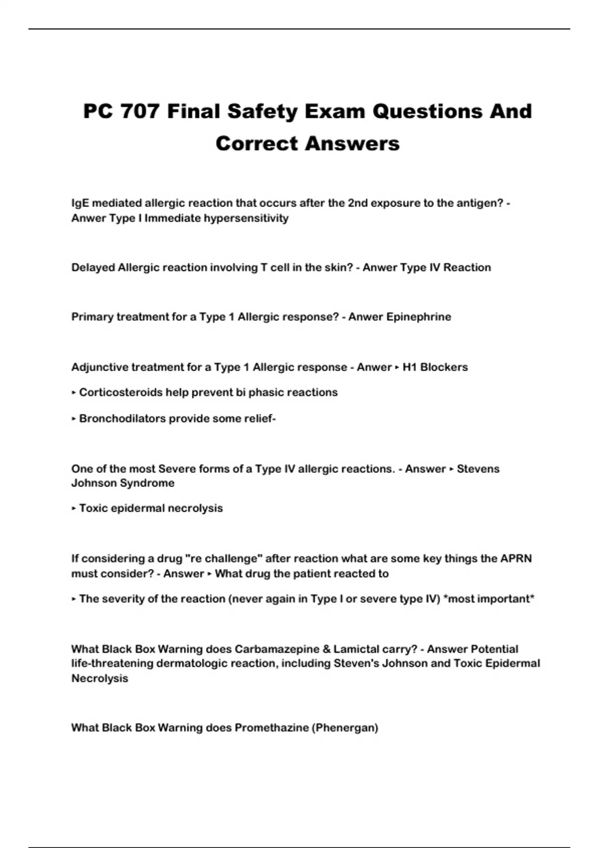 One of the most Severe forms of a Type IV allergic reactions. - Answer ‣ Stevens