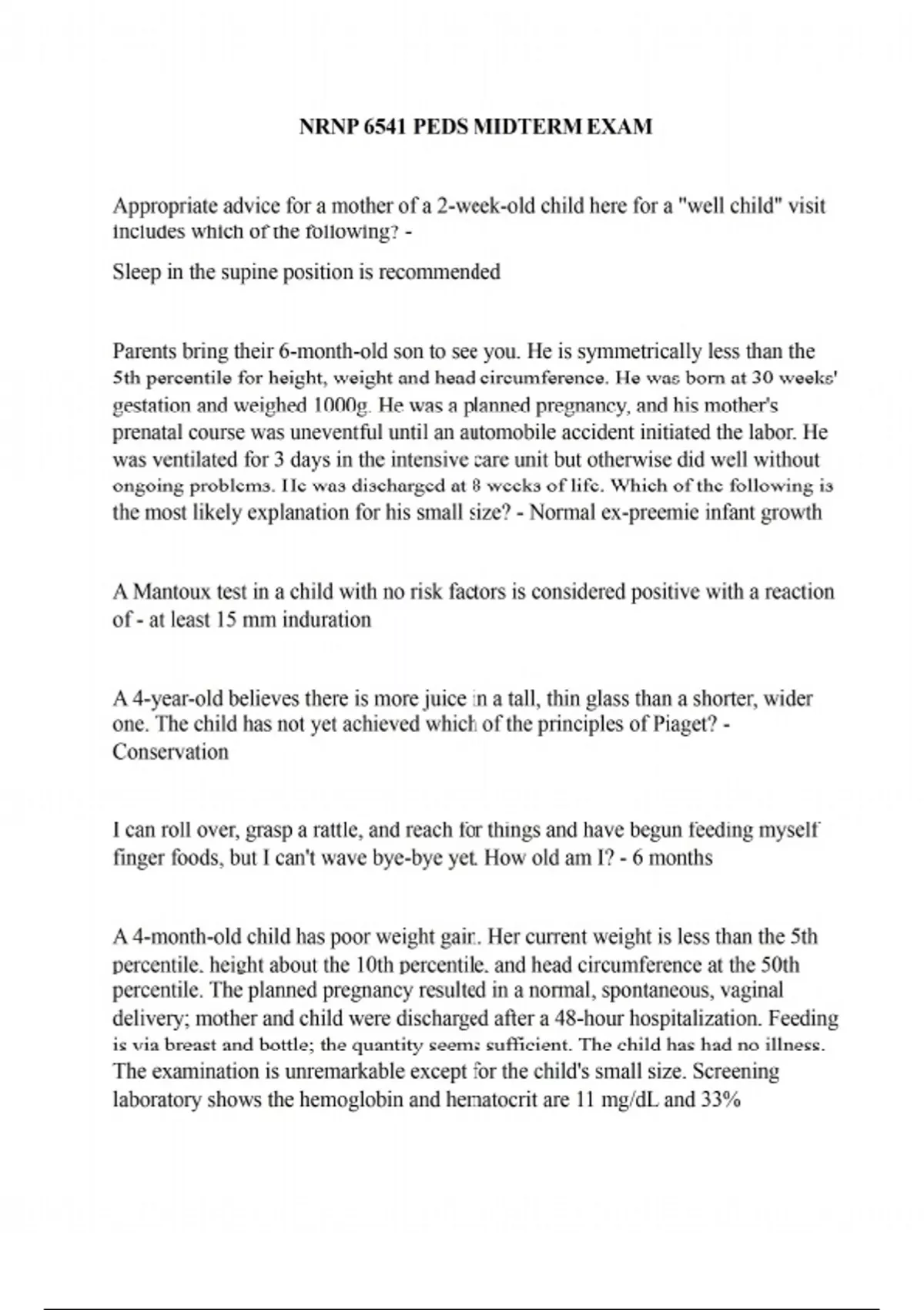 NRNP 6541 PEDS MIDTERM EXAM