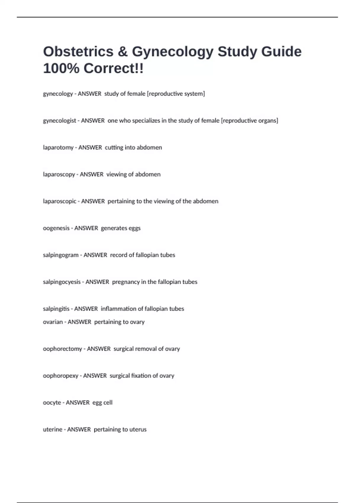 gynecology - ANSWER study of female [reproductive system]