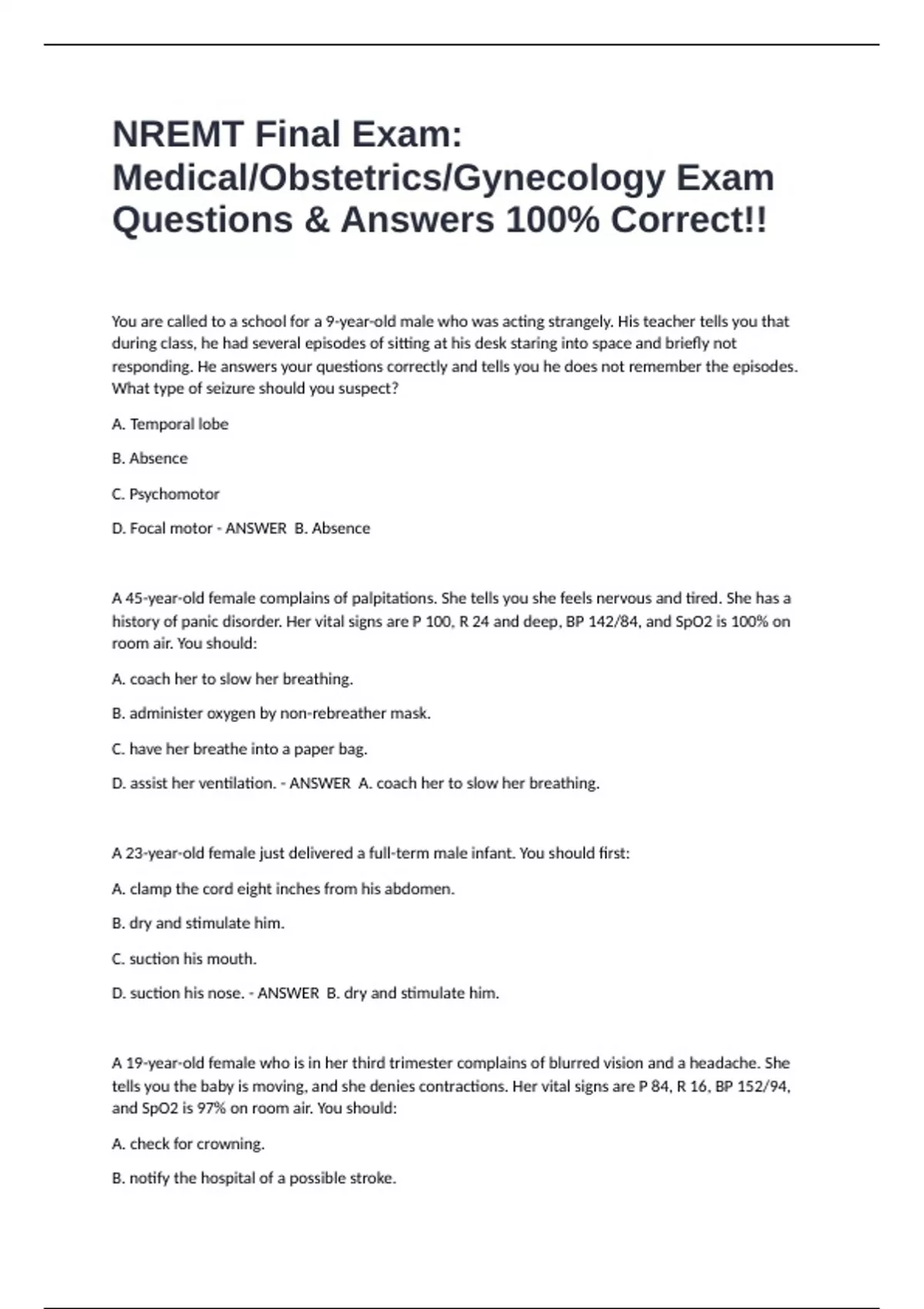 D. assist her ventilation. - ANSWER A. coach her to slow her breathing.