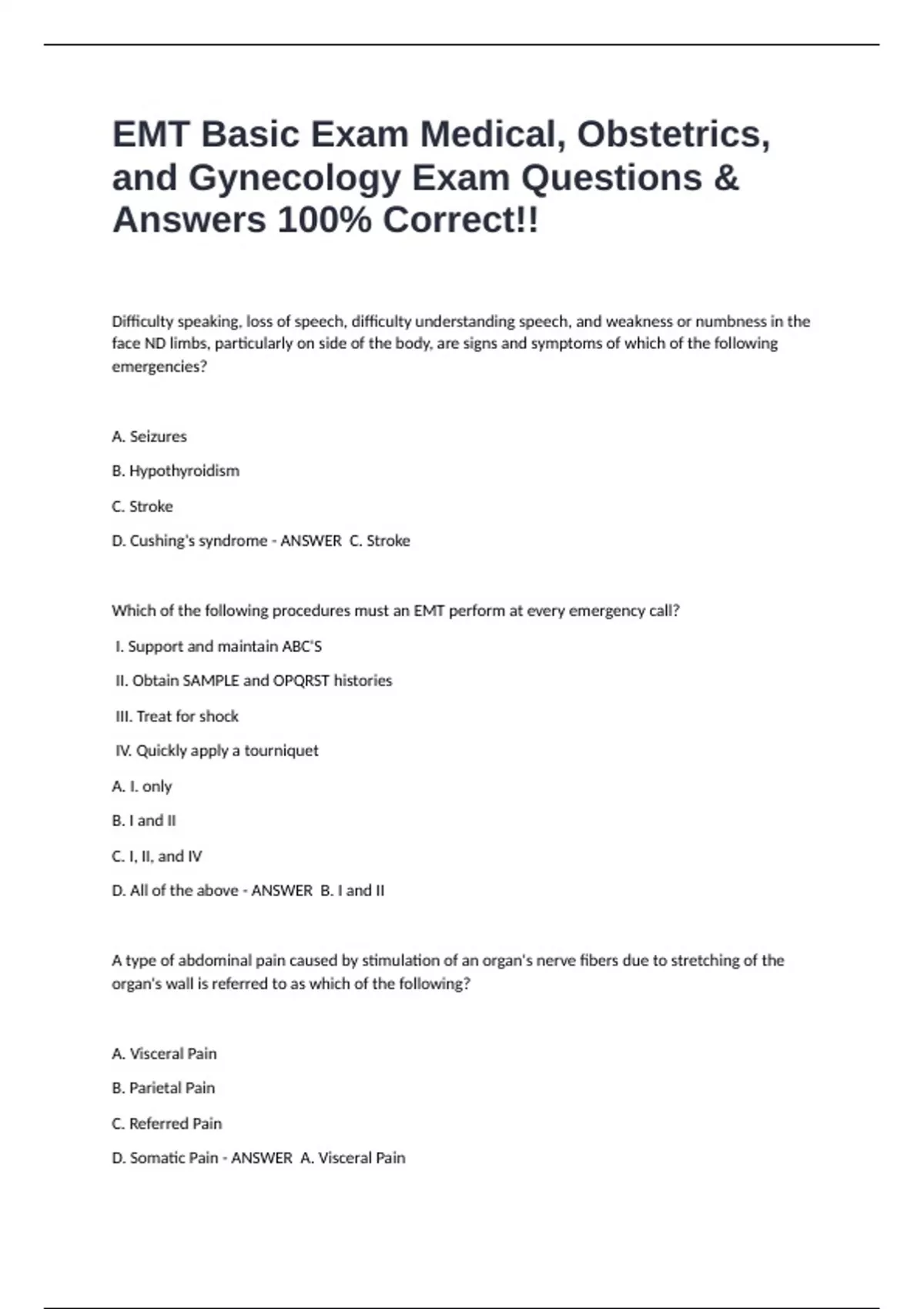 D. Somatic Pain - ANSWER A. Visceral Pain