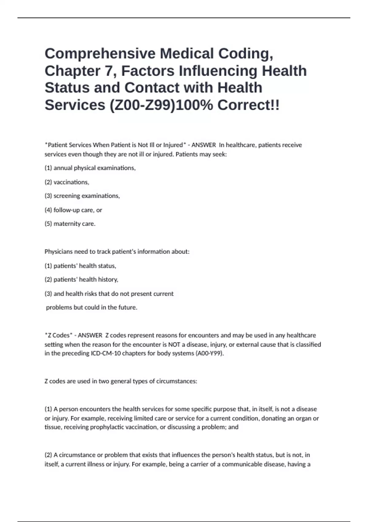 *Z Codes* - ANSWER Z codes represent reasons for encounters and may be used in any healthcare