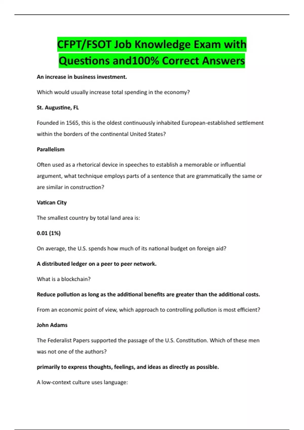 CFPT/FSOT Job Knowledge Exam with