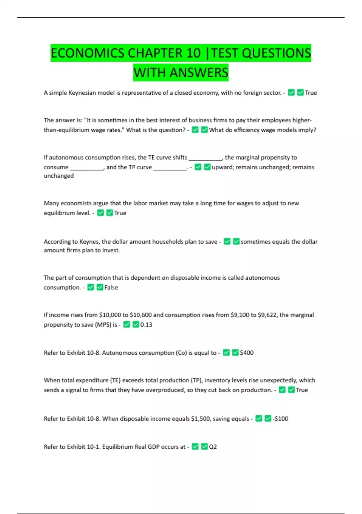 ECONOMICS CHAPTER 10 |TEST QUESTIONS