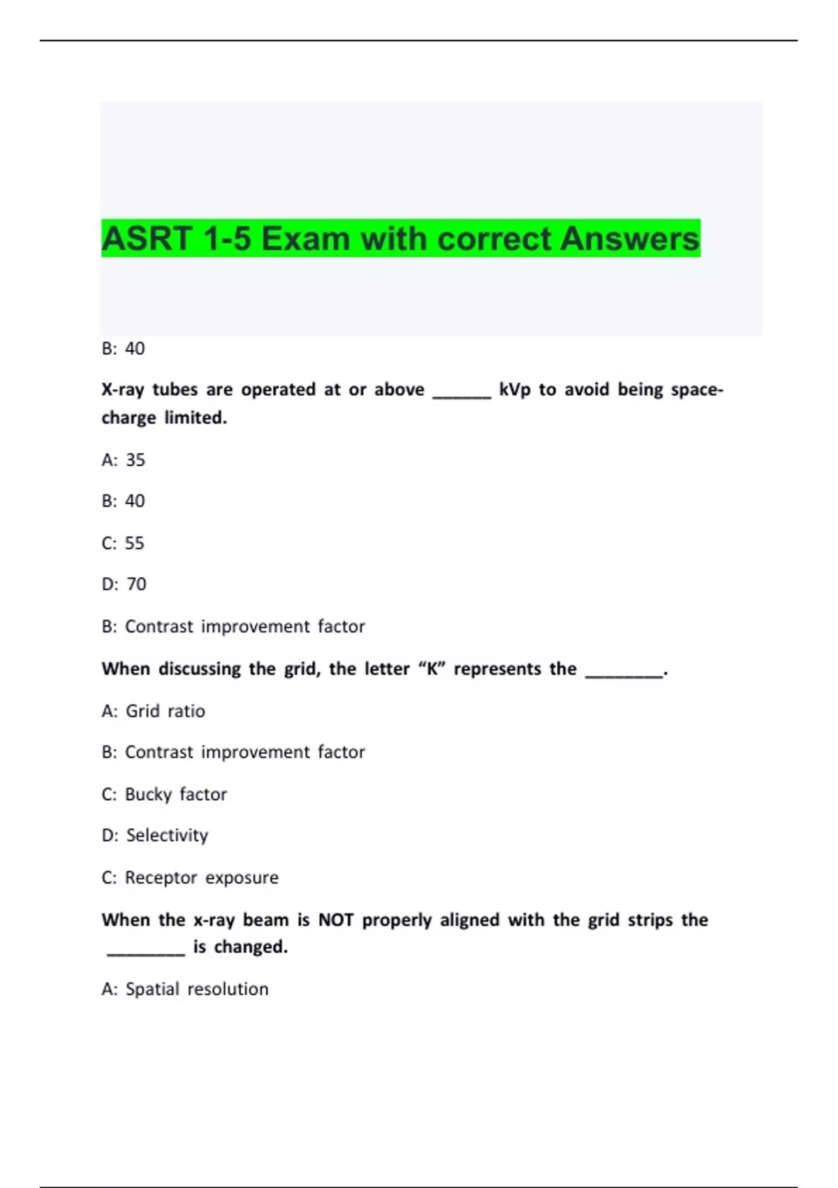ASRT 1-5 Exam with correct Answers