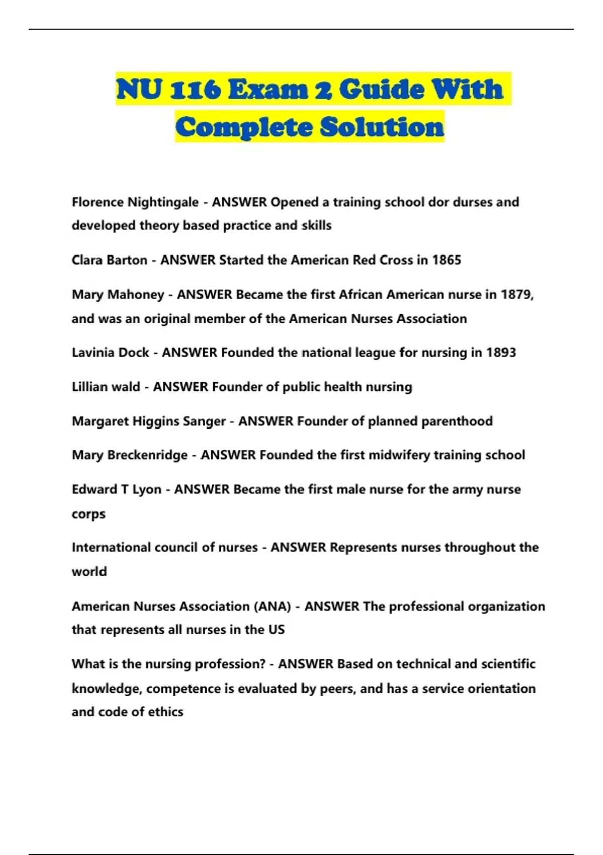 NU 116 Exam 2 Guide With Complete Solution...
