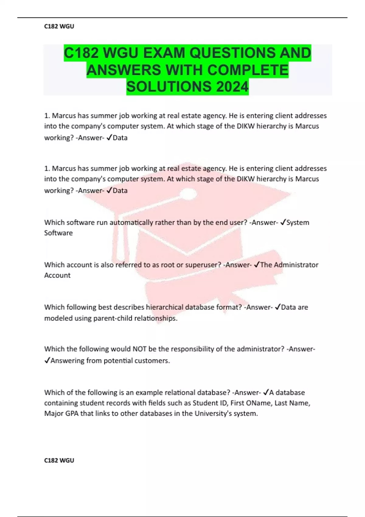 C182 WGU EXAM QUESTIONS AND