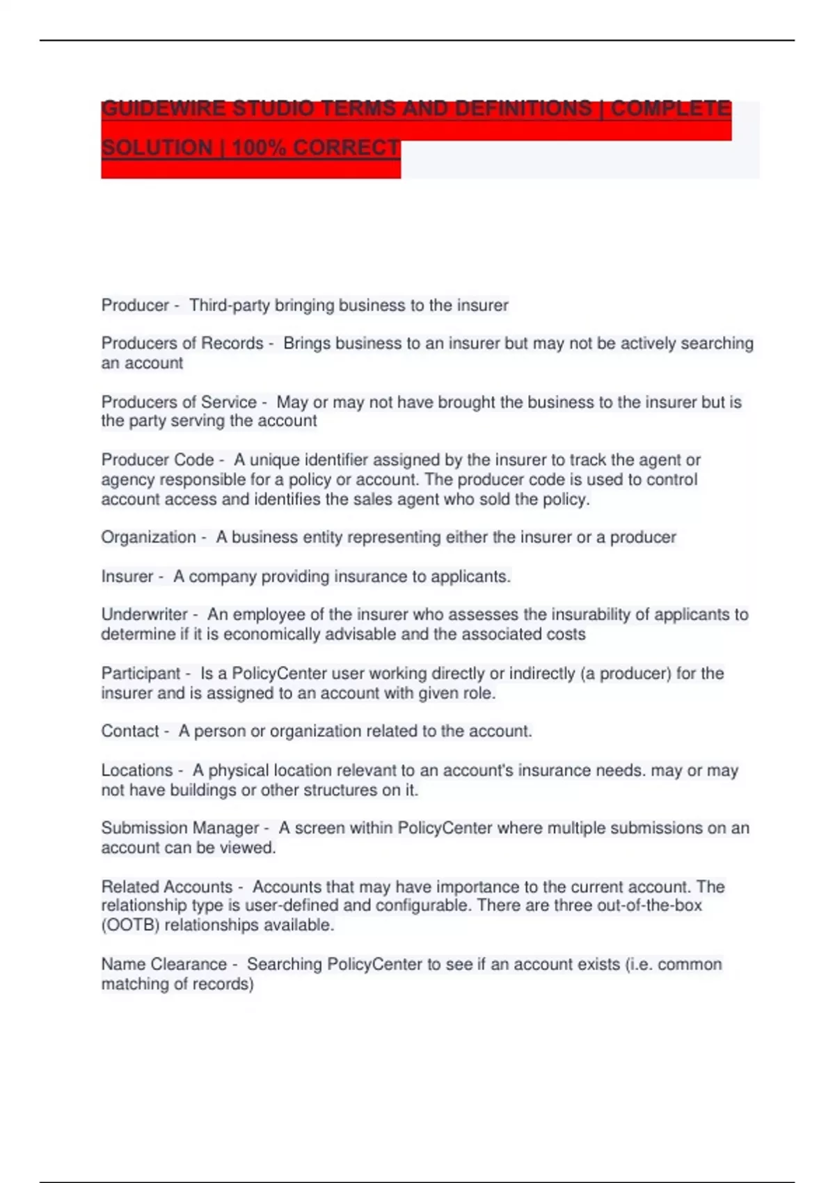 Policy - Electronic file where PolicyCenter stores information that is part of the legal