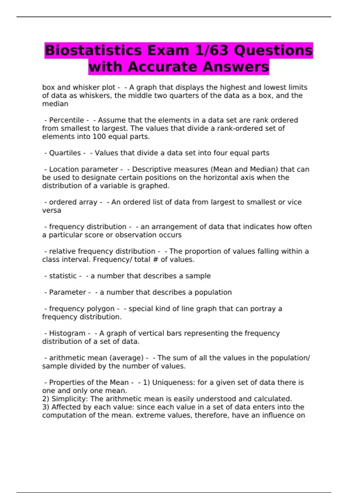 Biostatistics Exam 1/63 Questions with Accurate Answers