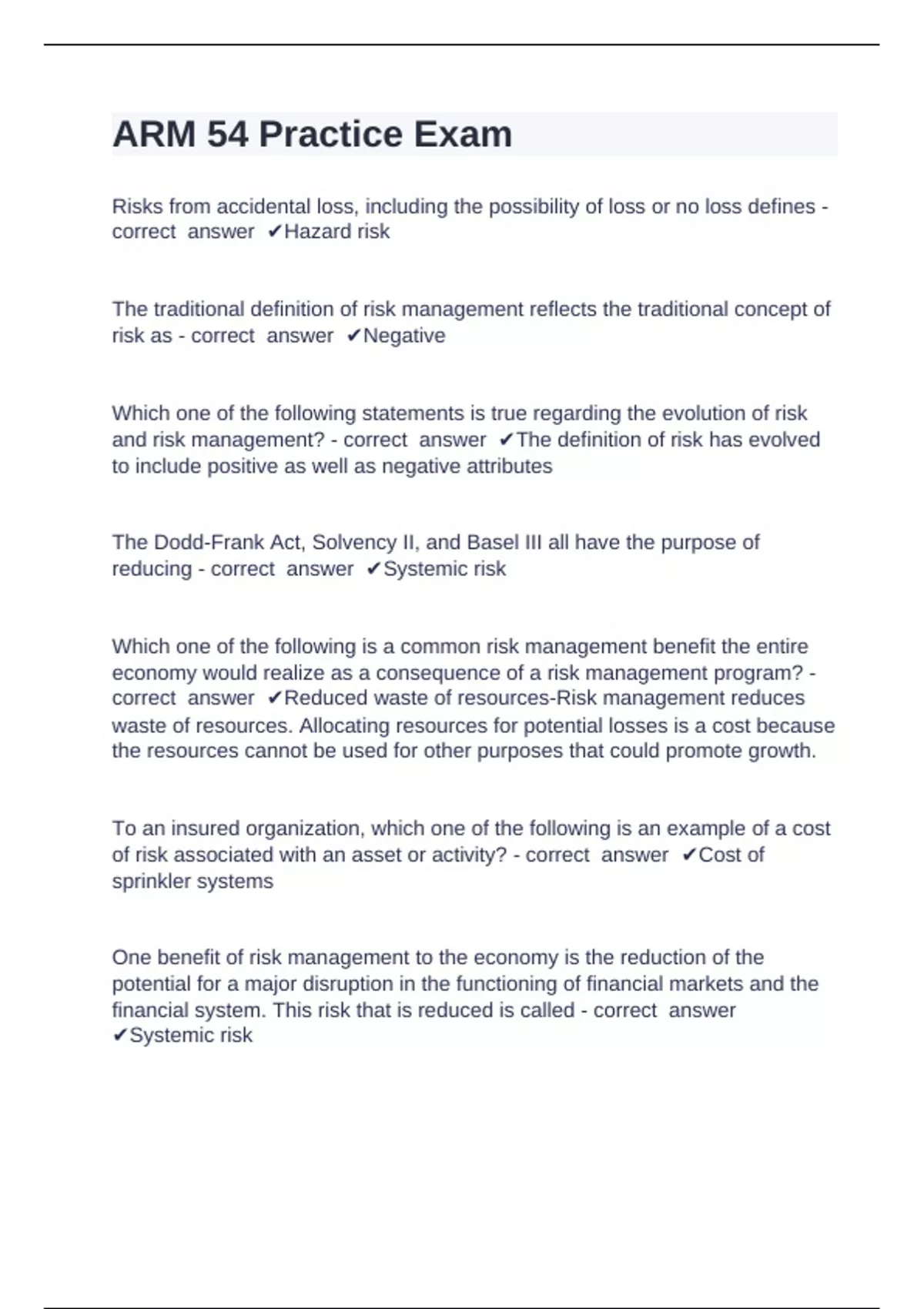 ARM 54 Practice Exam questions and answers certified 2024