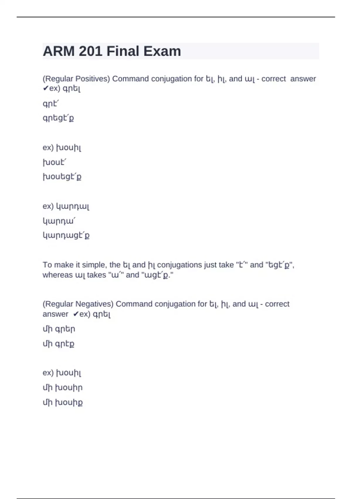 (Regular Positives) Command conjugation for ել, իլ, and ալ - correct answer