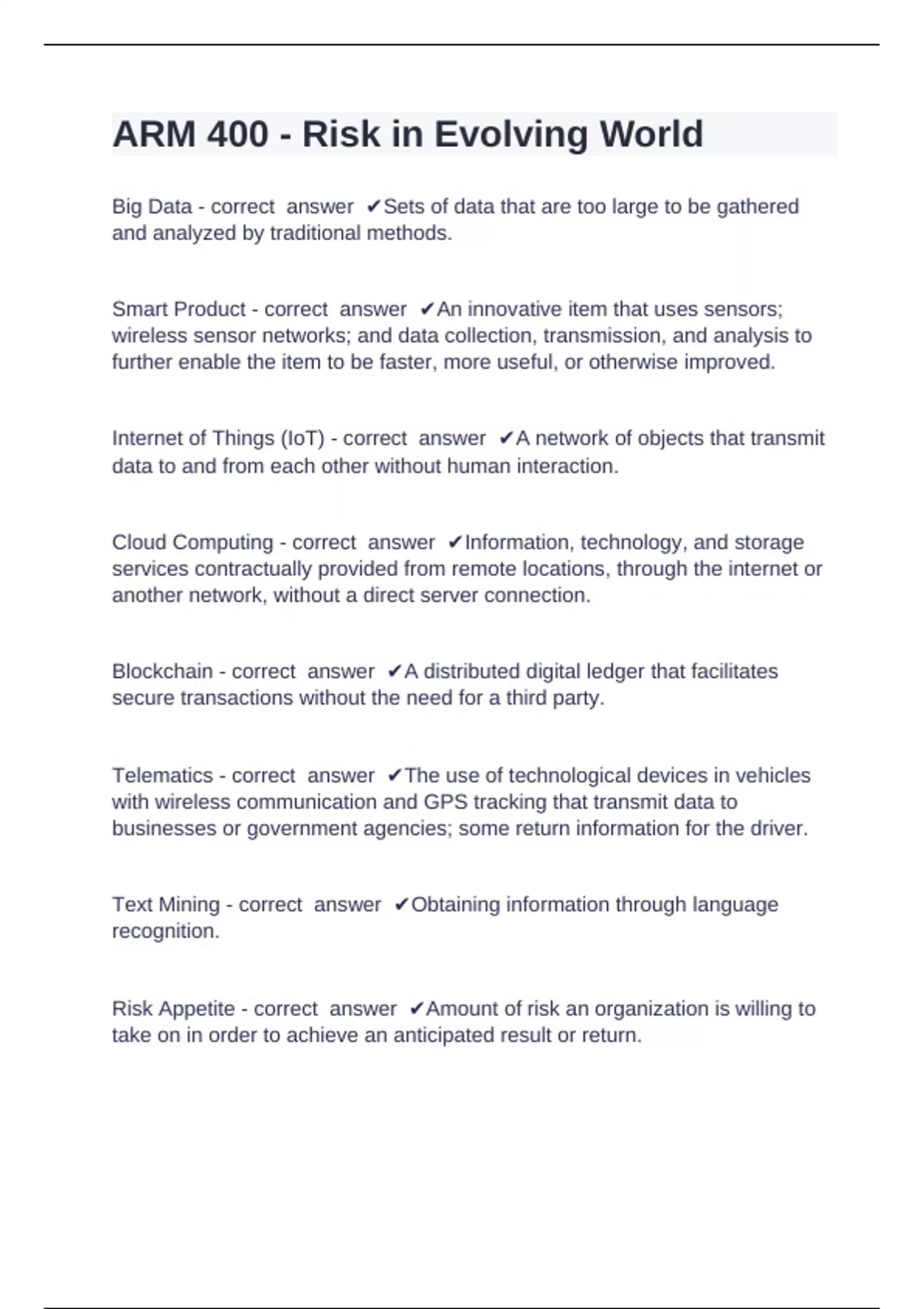 ARM 400 - Risk in Evolving World