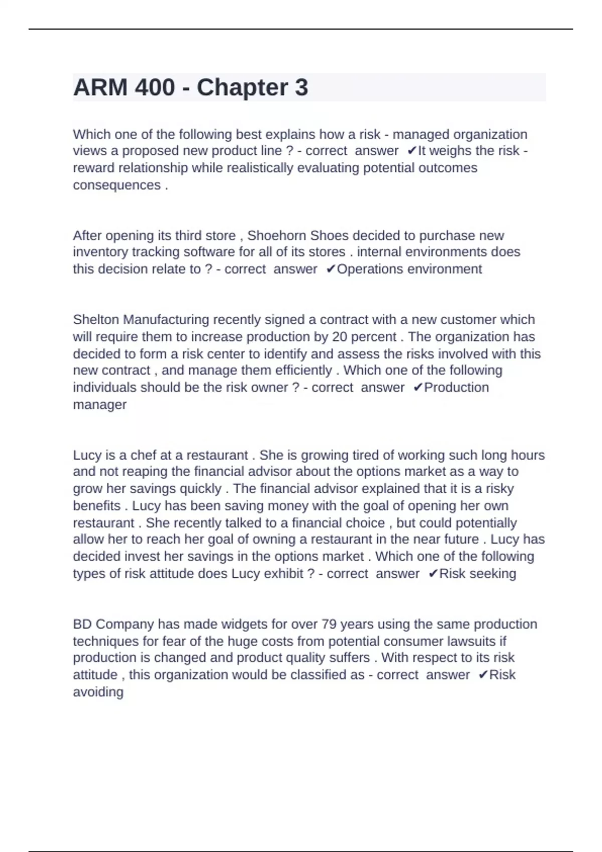 Which one of the following best explains how a risk - managed organization