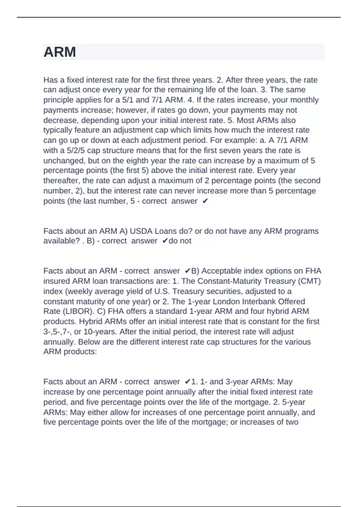 Facts about an ARM - correct answer ✔1. 1- and 3-year ARMs: May