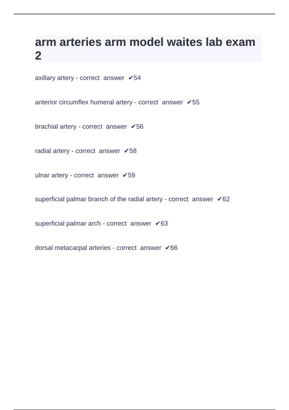 arm arteries arm model waites lab exam 2. questions and answers verified 2024