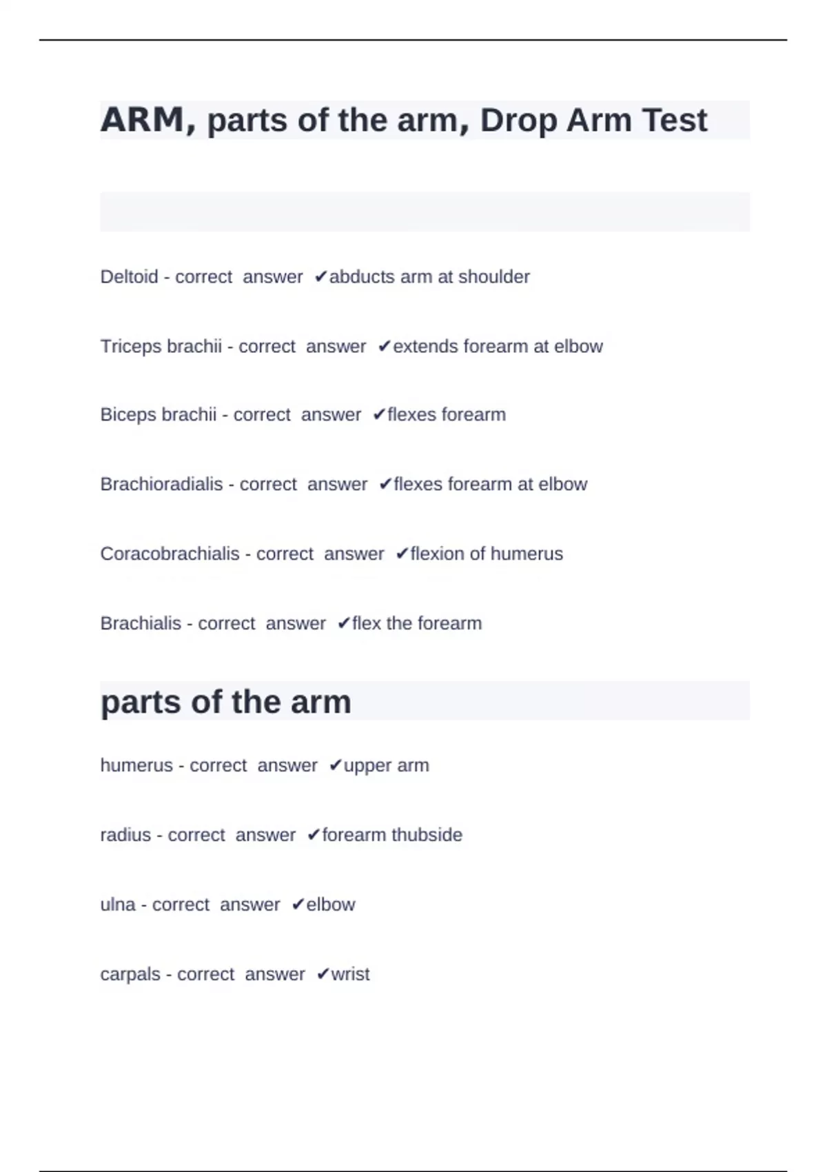 Brachioradialis - correct answer ✔flexes forearm at elbow