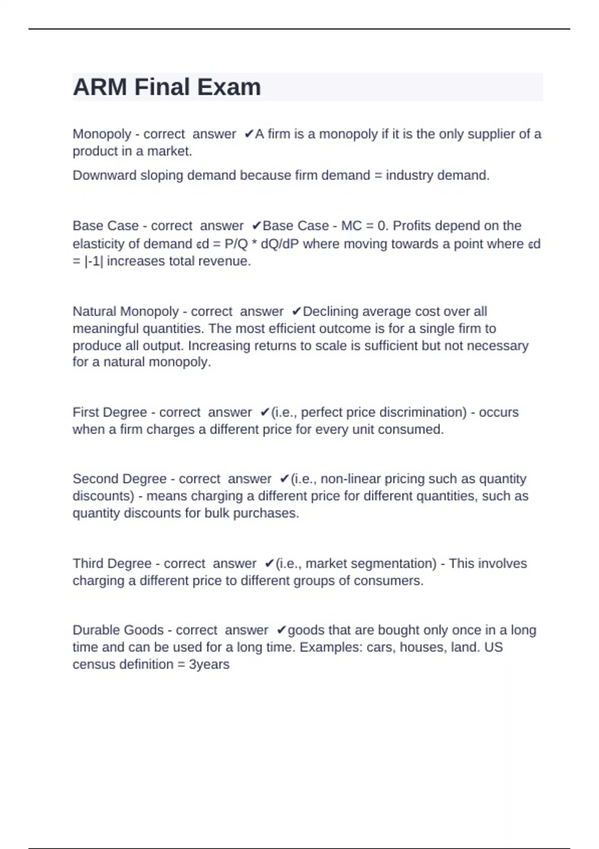 Monopoly - correct answer ✔A firm is a monopoly if it is the only supplier of a