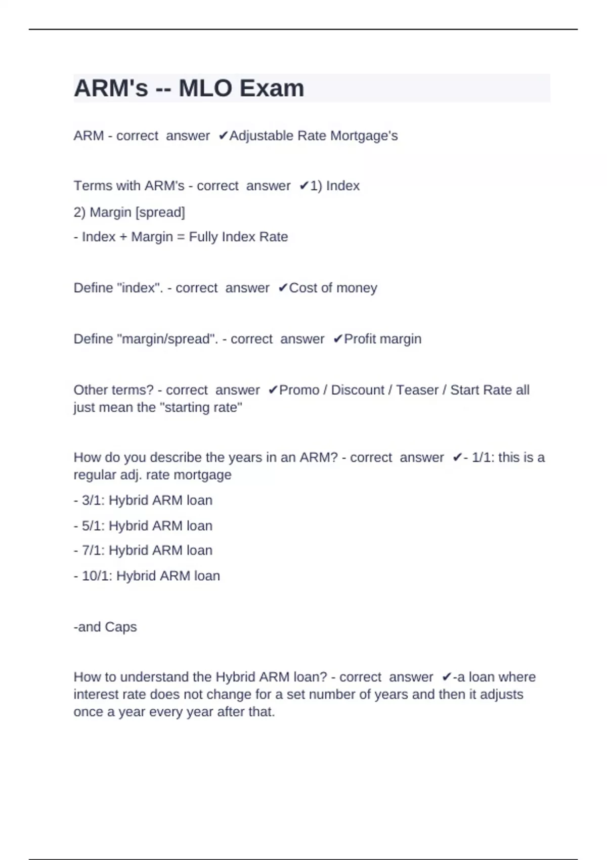 How to understand the Hybrid ARM loan? - correct answer ✔-a loan where