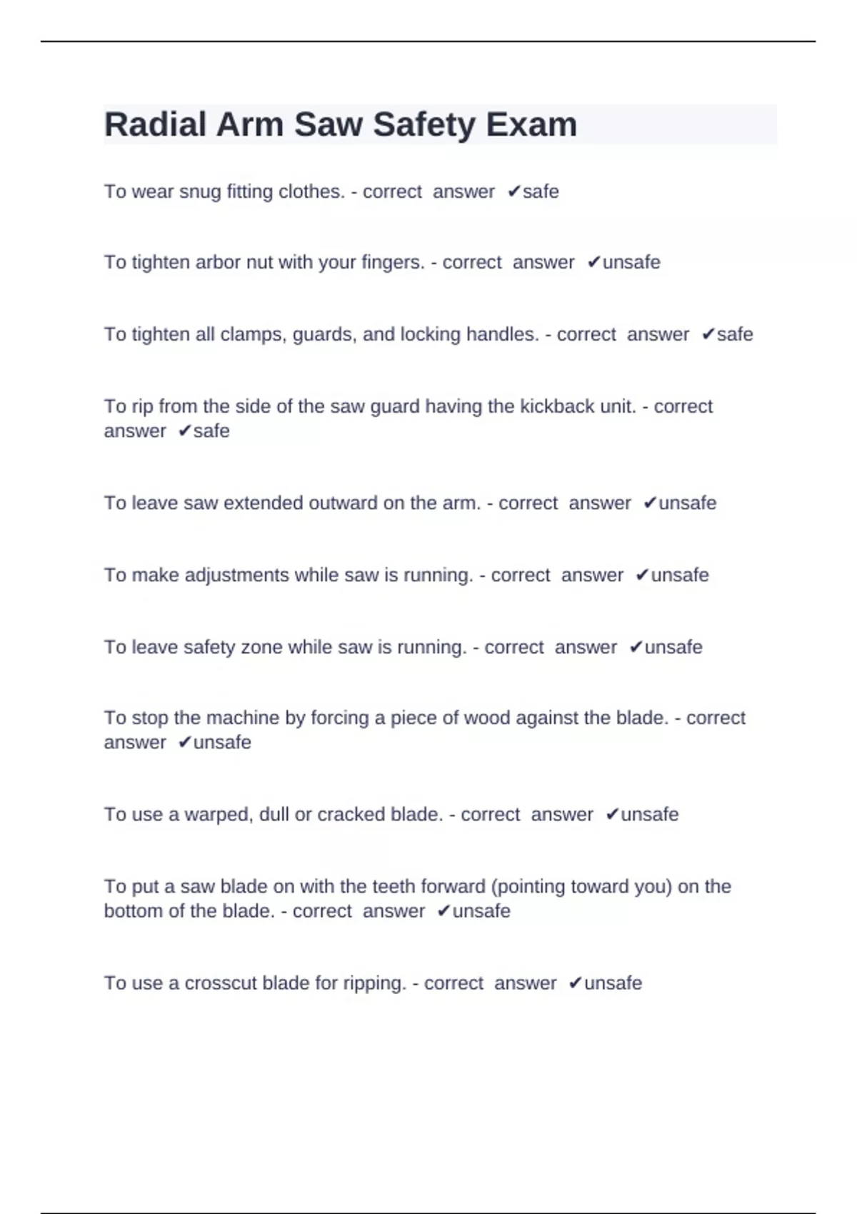 To use a crosscut blade for ripping. - correct answer ✔unsafe