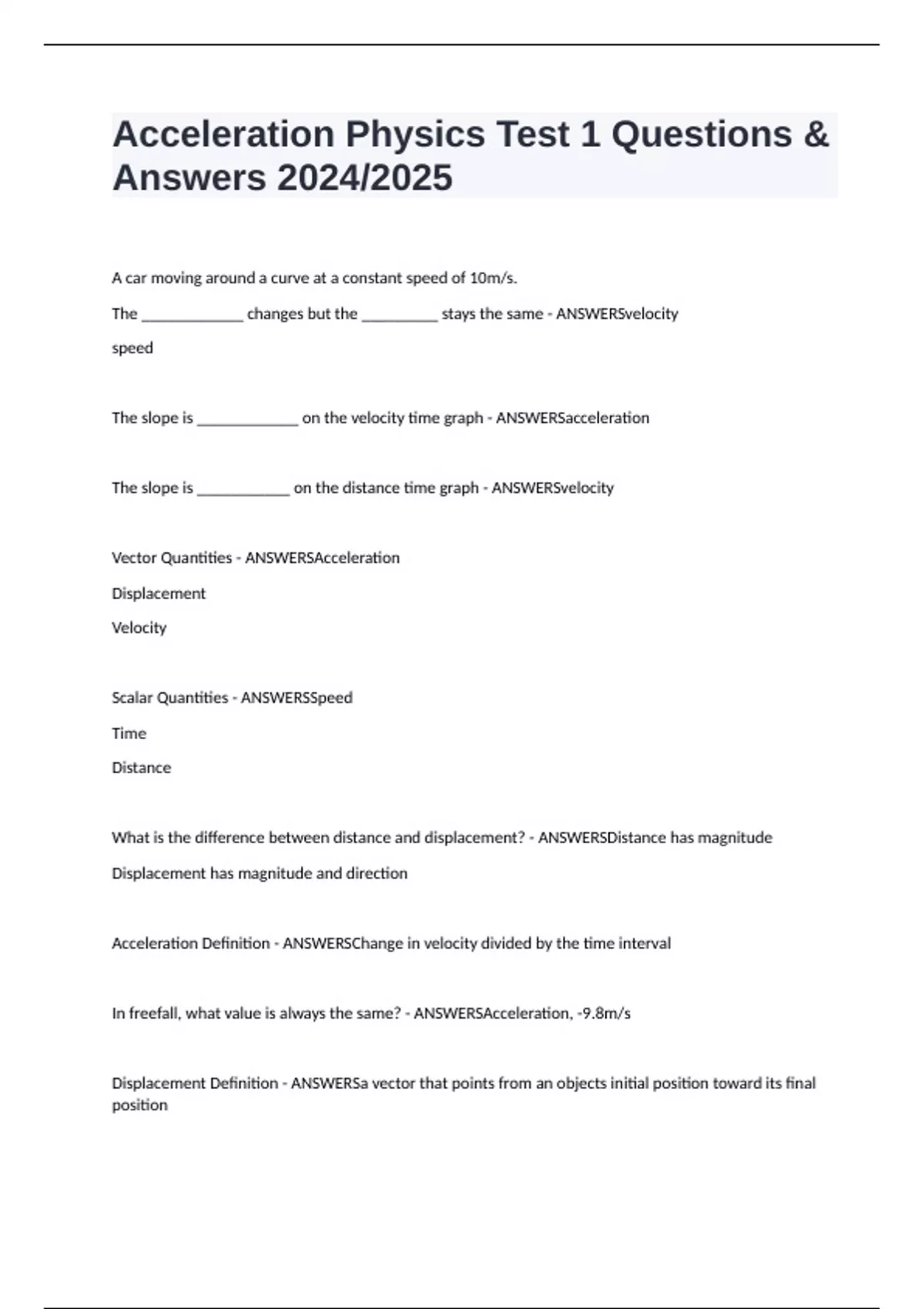 Vector Quantities - ANSWERSAcceleration