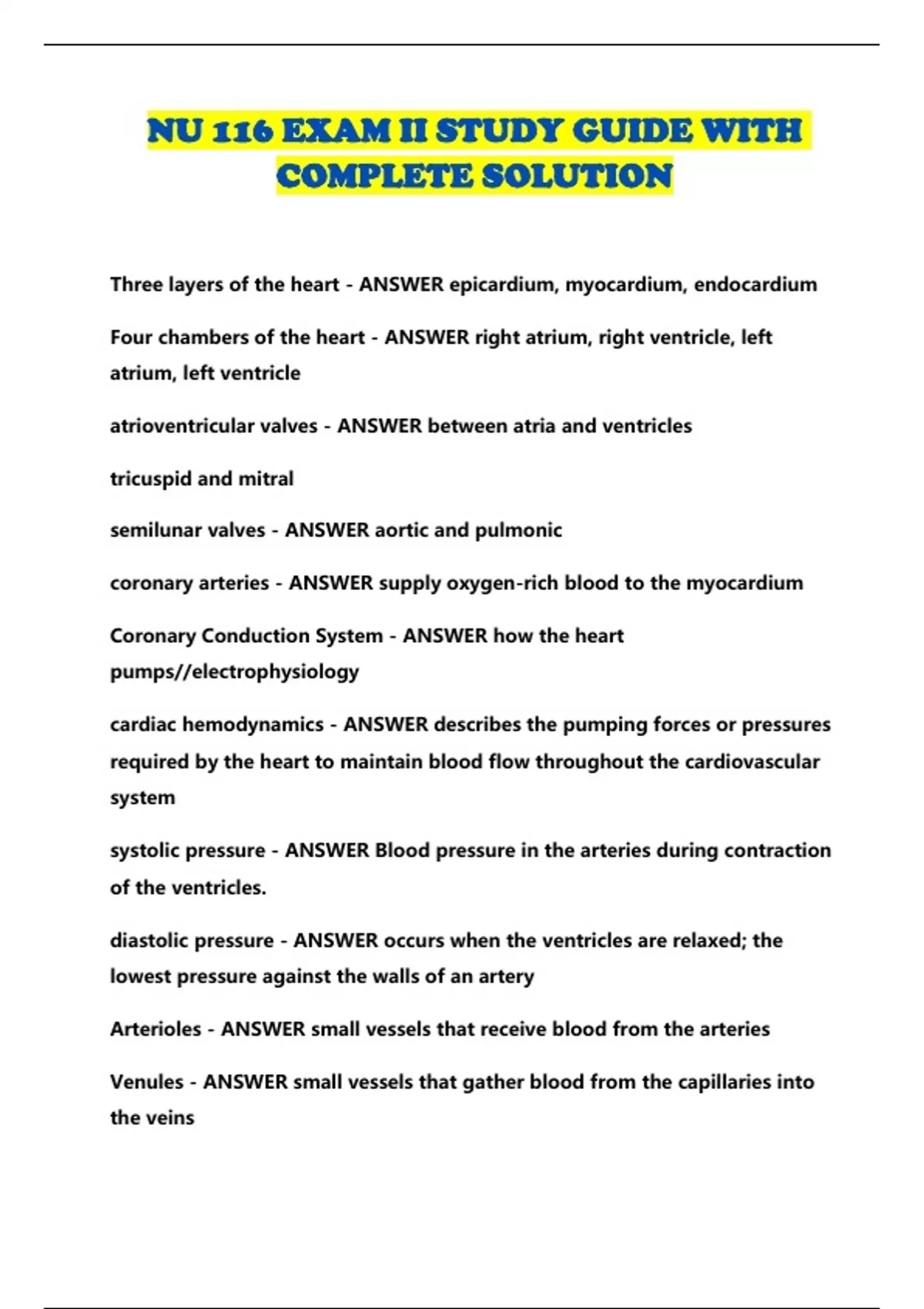 NU 116 EXAM II STUDY GUIDE WITH COMPLETE SOLUTION...