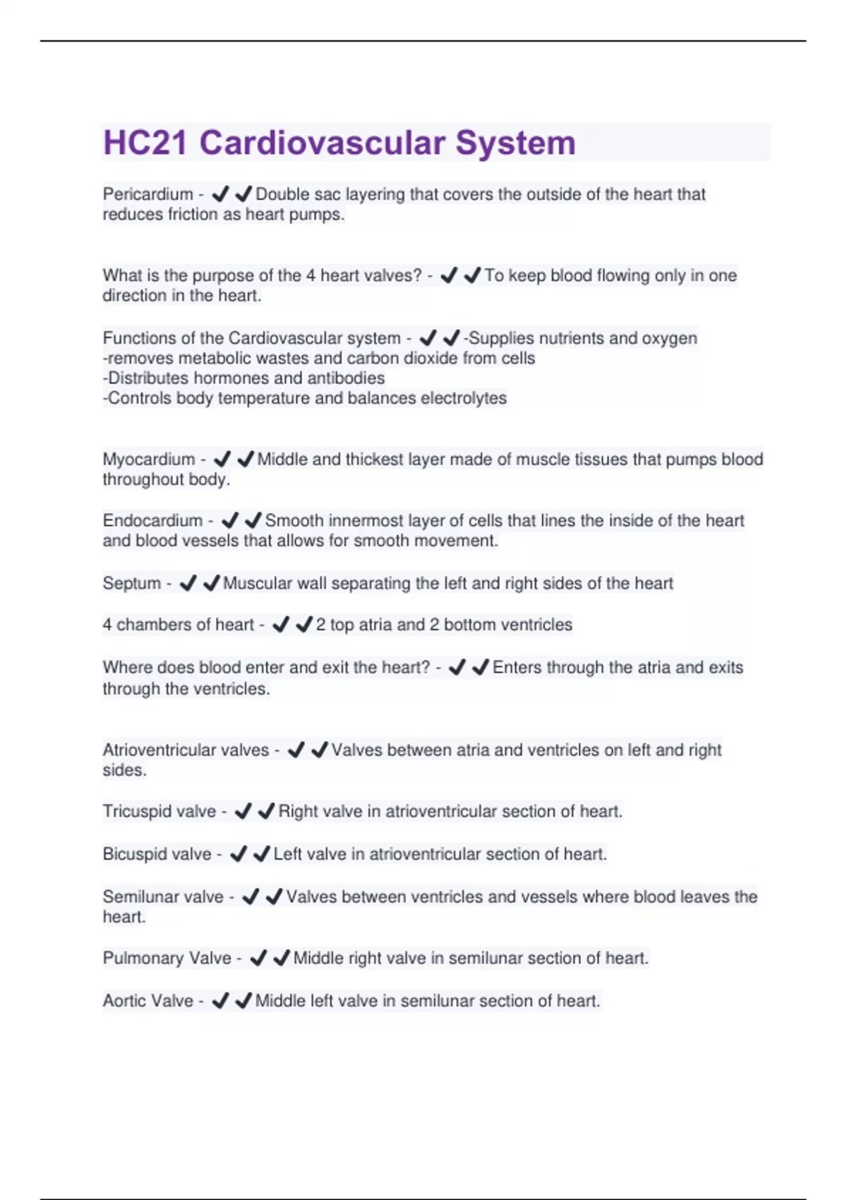 Functions of the Cardiovascular system - ✔️✔️-Supplies nutrients and oxygen
