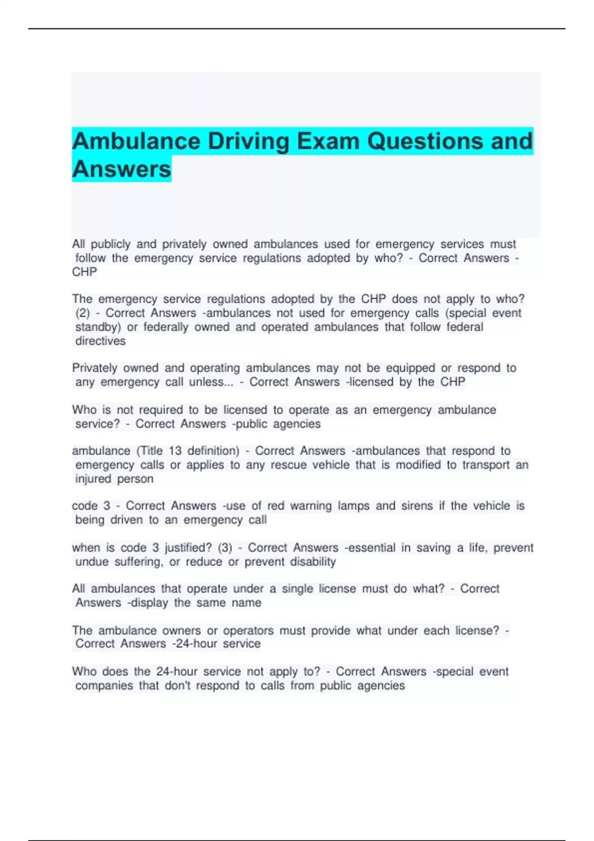 ambulance iidrivers iicertificate ii(2) ii- iiCorrect iiAnswers ii-not iia iiverification iiof iidriving