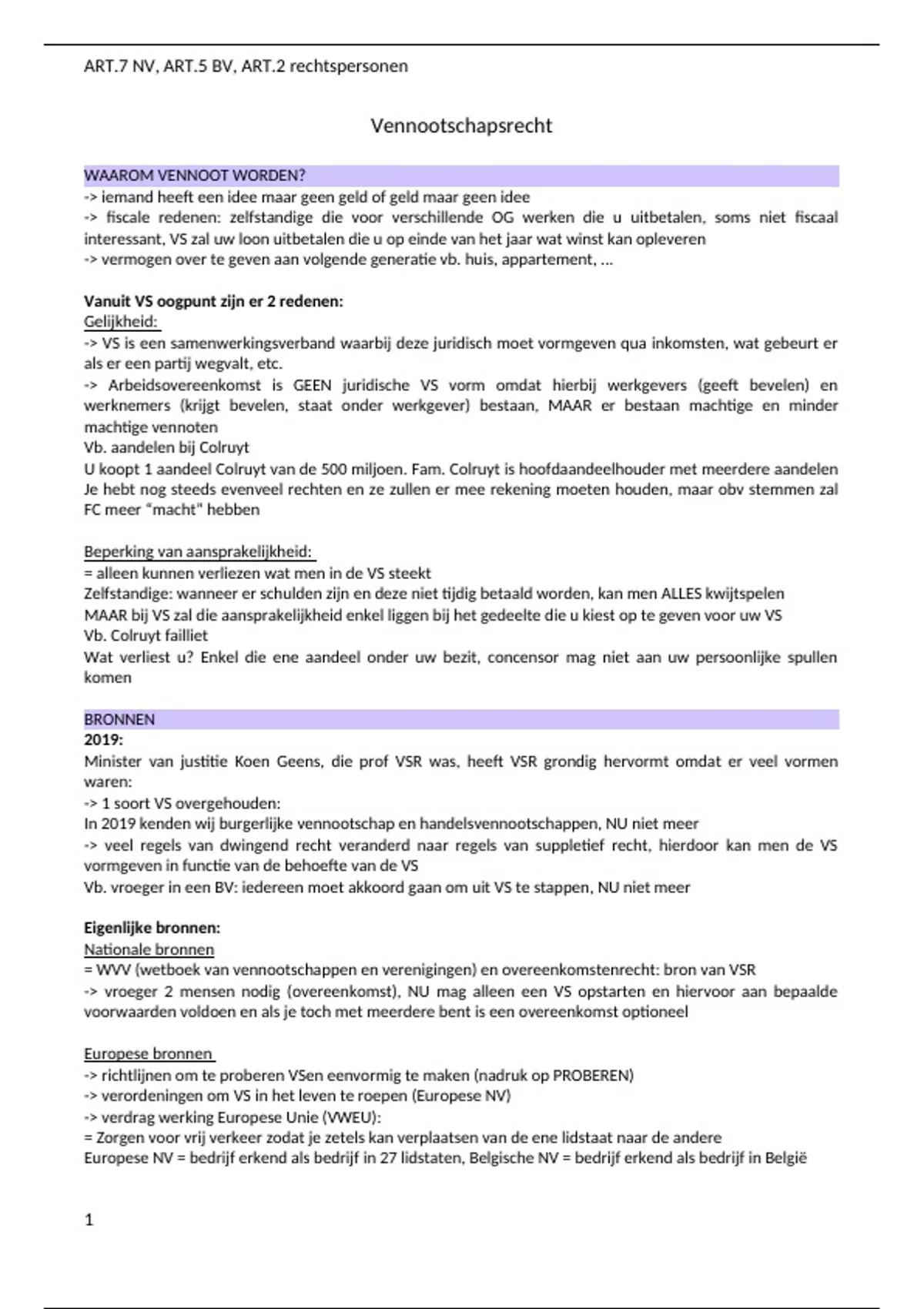 ,ART.7 NV, ART.5 BV, ART.2 rechtspersonen