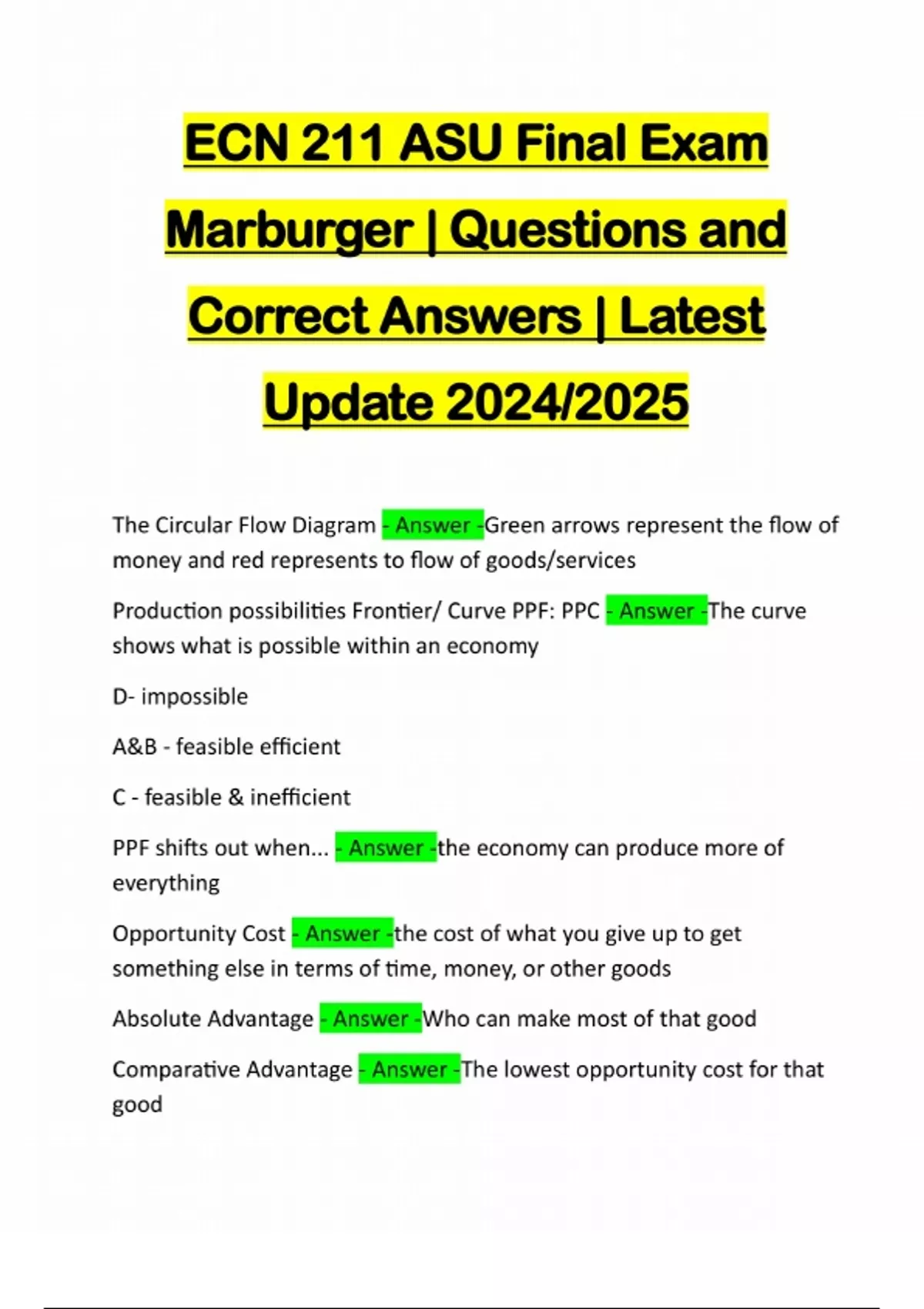 ECN 211 ASU Final Exam Marburger | Questions and Correct Answers | Latest Update 2024/2025