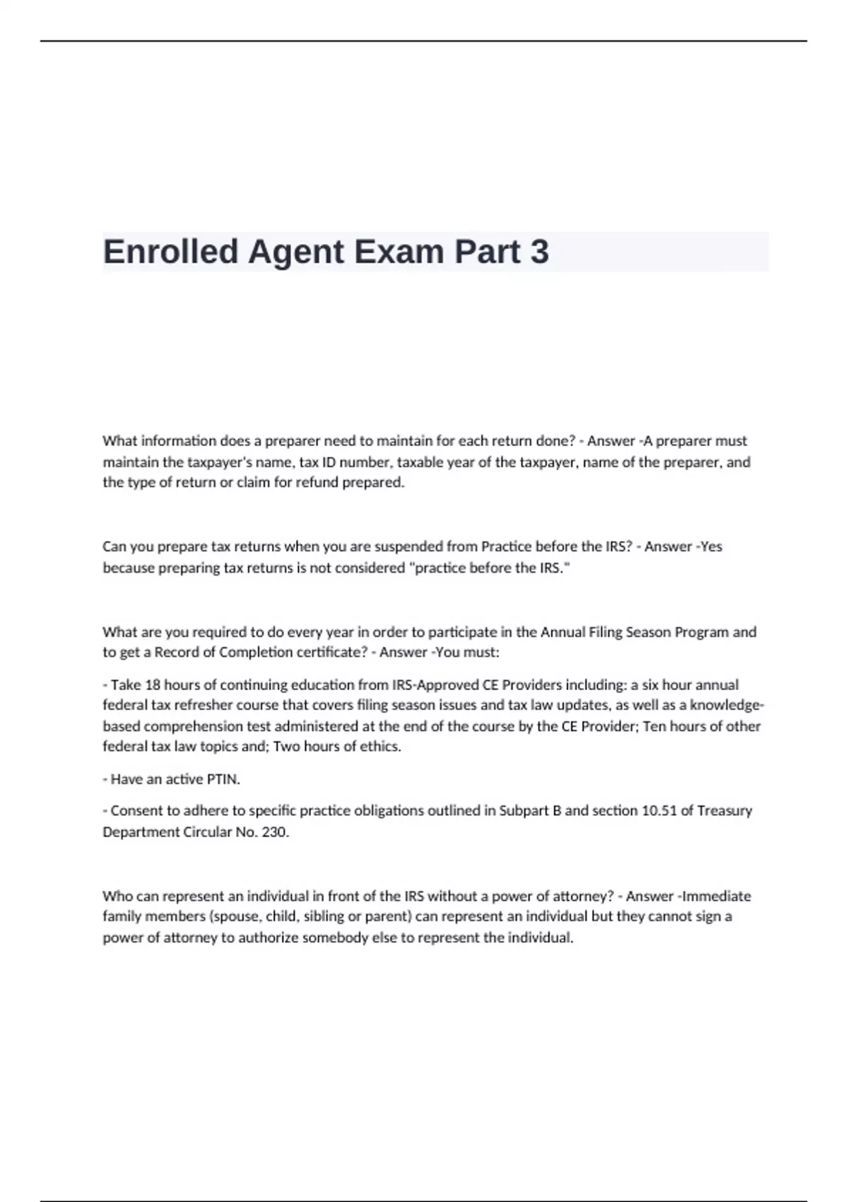 What information does a preparer need to maintain for each return done? - Answer -A preparer must