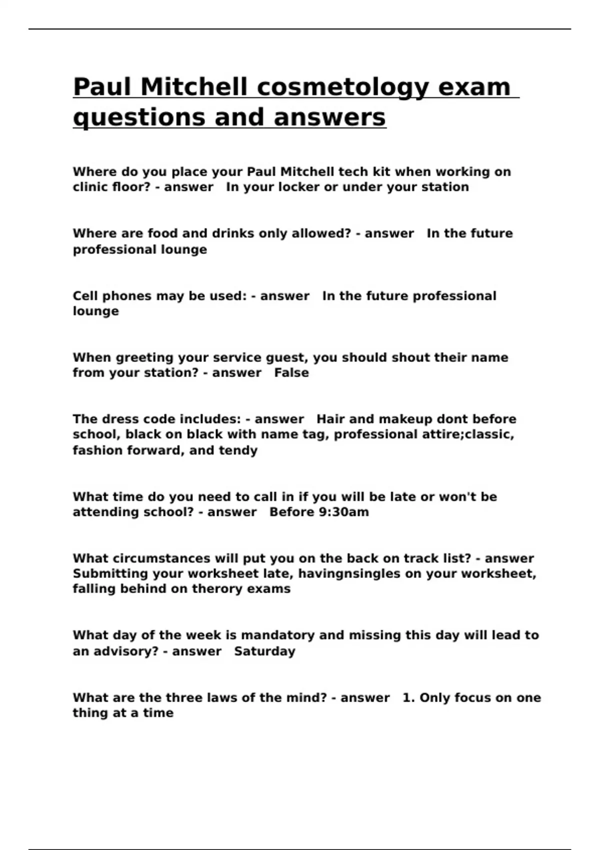 Paul Mitchell cosmetology exam
