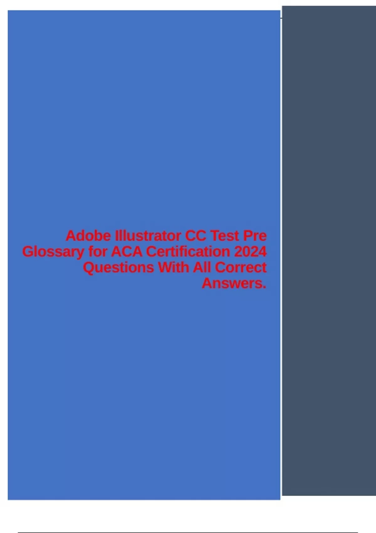 Adobe Illustrator CC Test Pre Glossary for ACA Certification 2024 Questions With All Correct answers