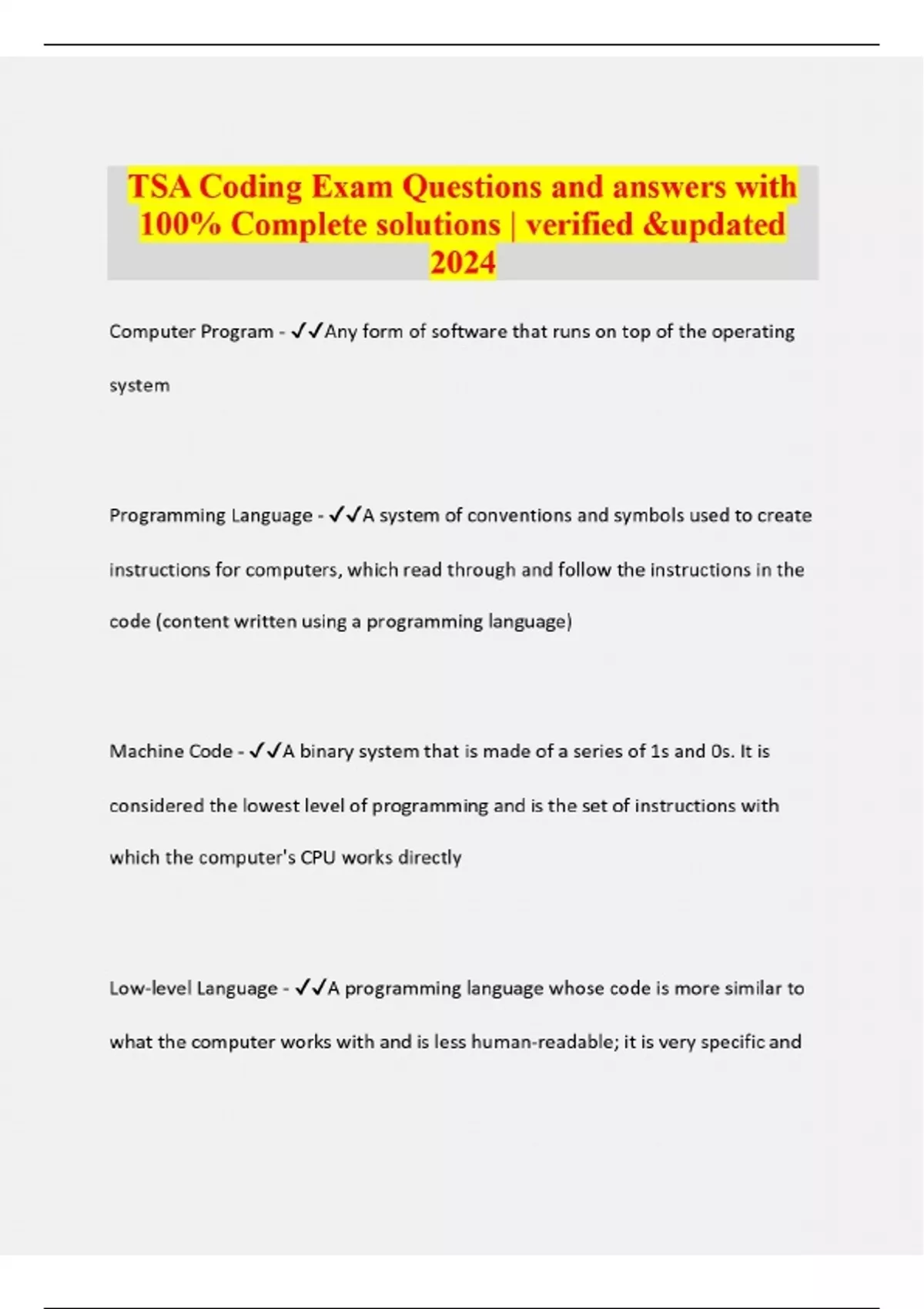 TSA Coding Exam Questions and answers with 100% Complete solutions | verified &updated 2024