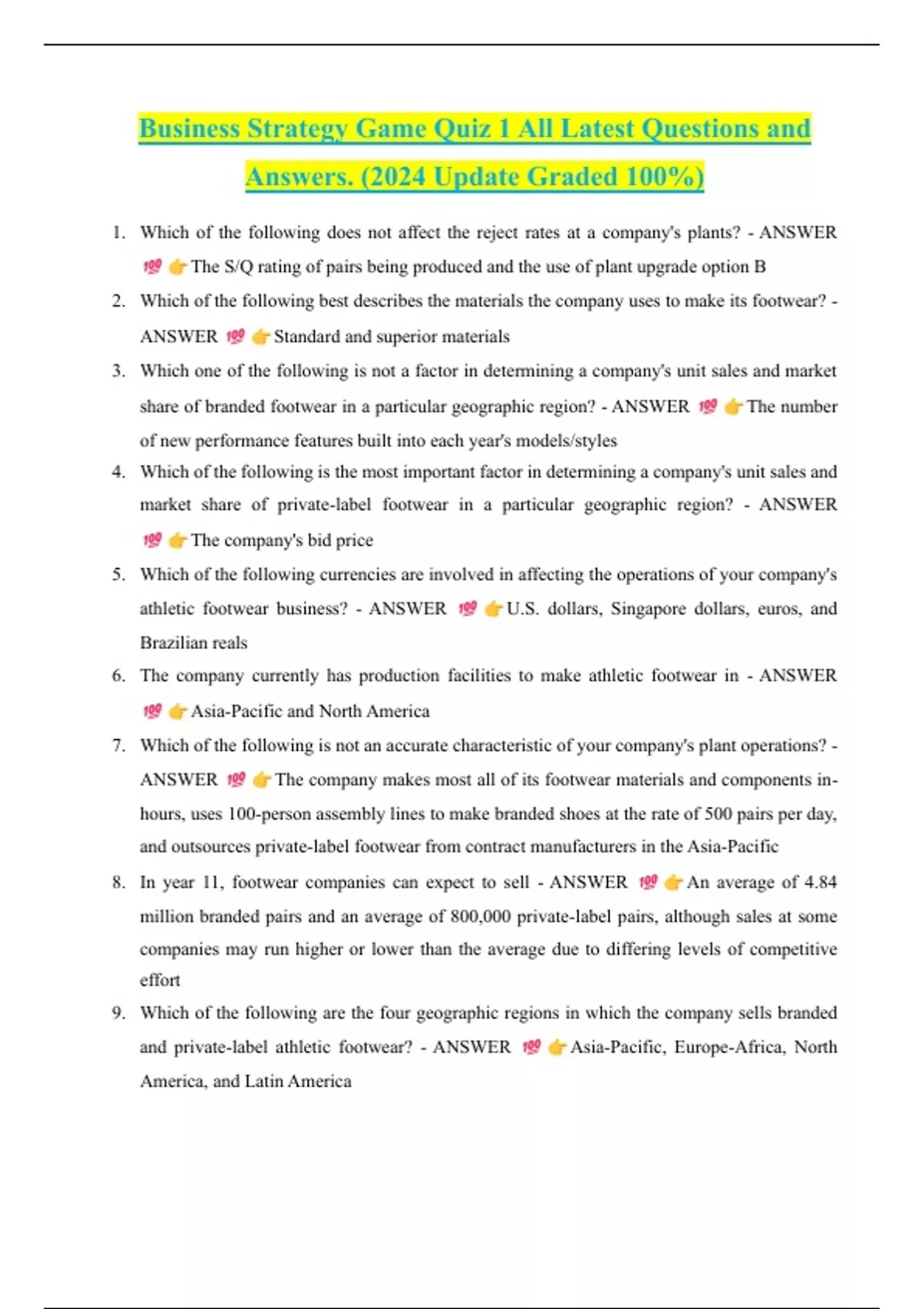 Business Strategy Game Quiz 1 All Latest Questions and
