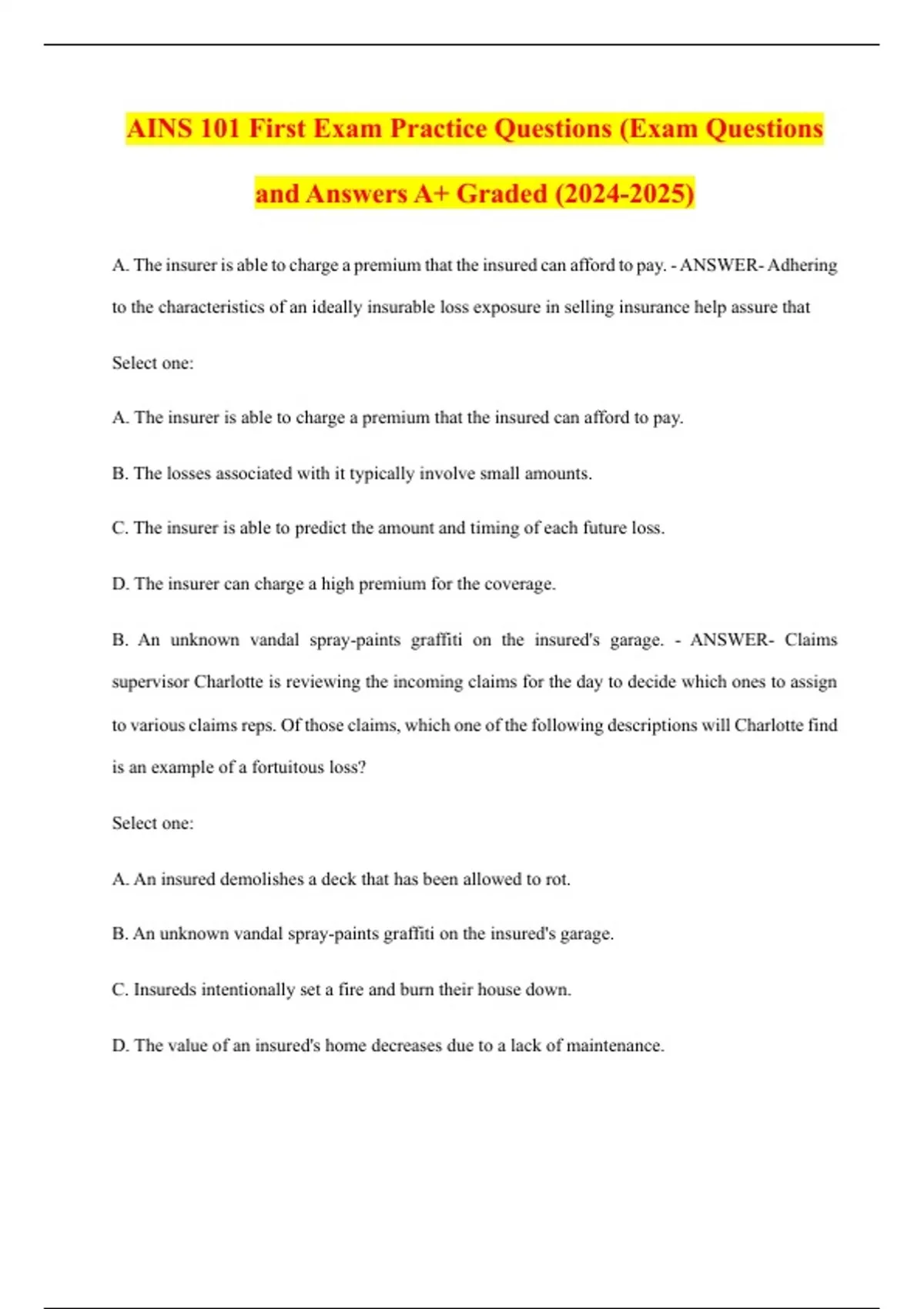 AINS 101 First Exam Practice Questions (Exam Questions