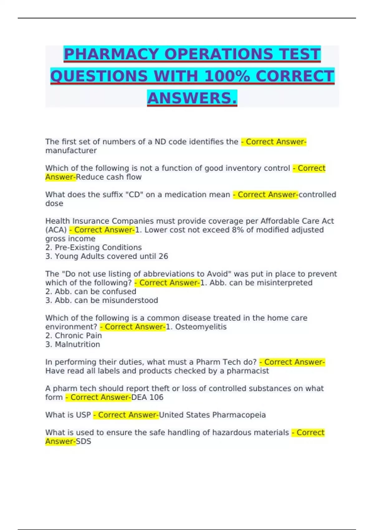 QUESTIONS WITH 100% CORRECT