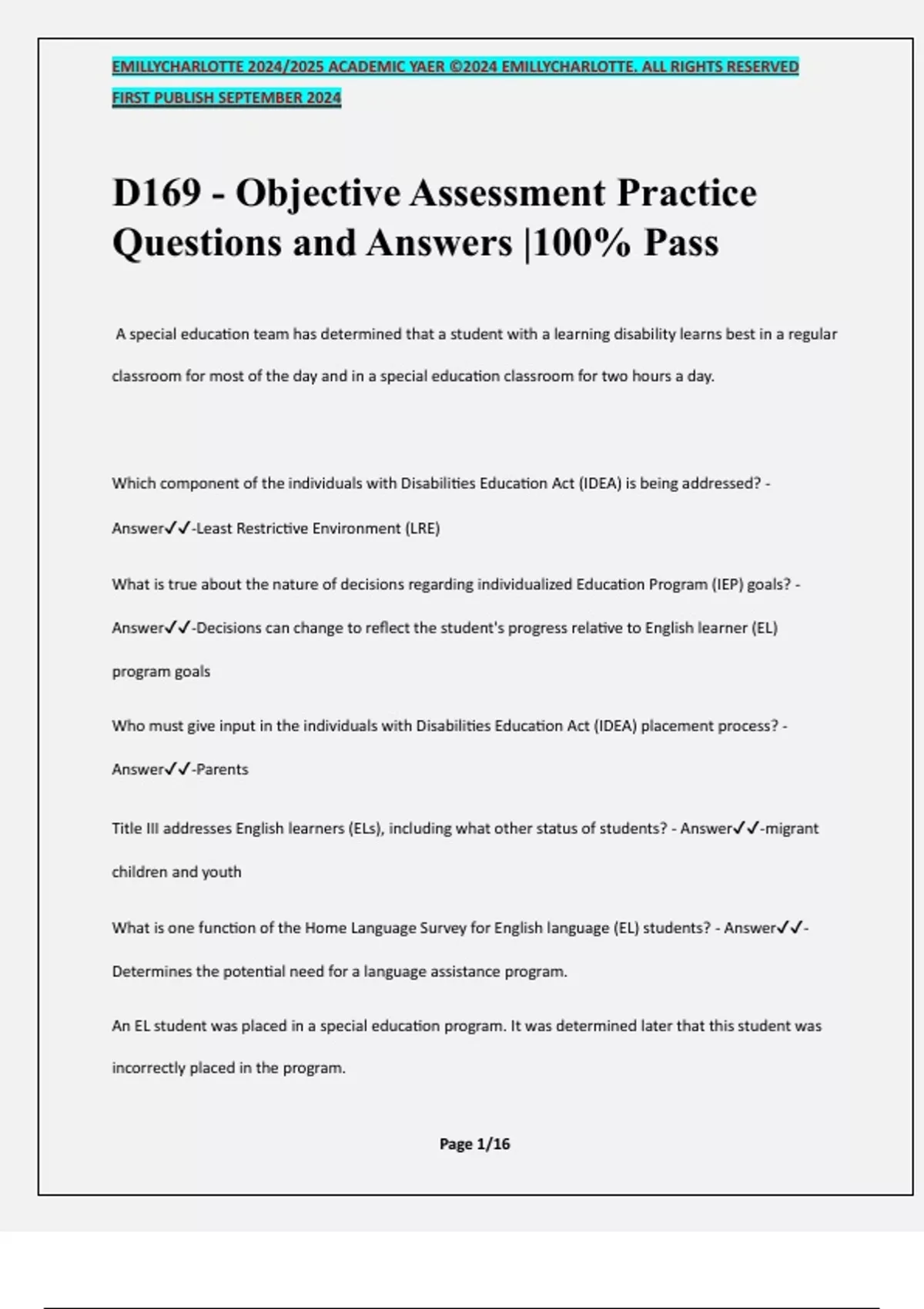 What may be the reason for this? - Answer✔✔-The student was identified as having a learning disorder