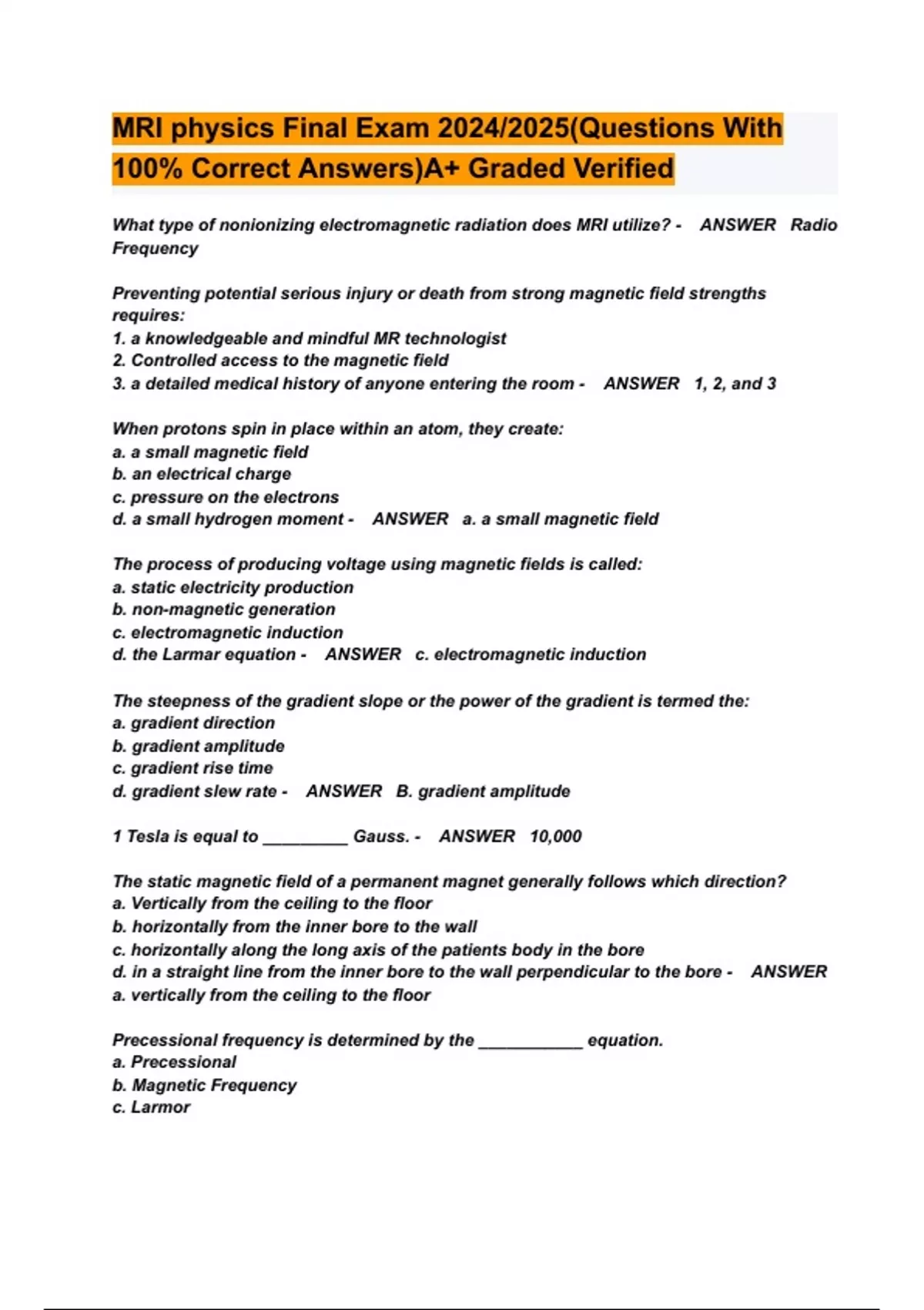 MRI physics Final Exam 2024/2025(Questions With 100% Correct Answers)A+ Graded Verified