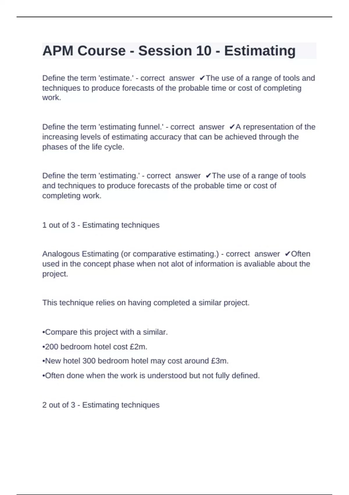 3 out of 3 - Estimating techniques
